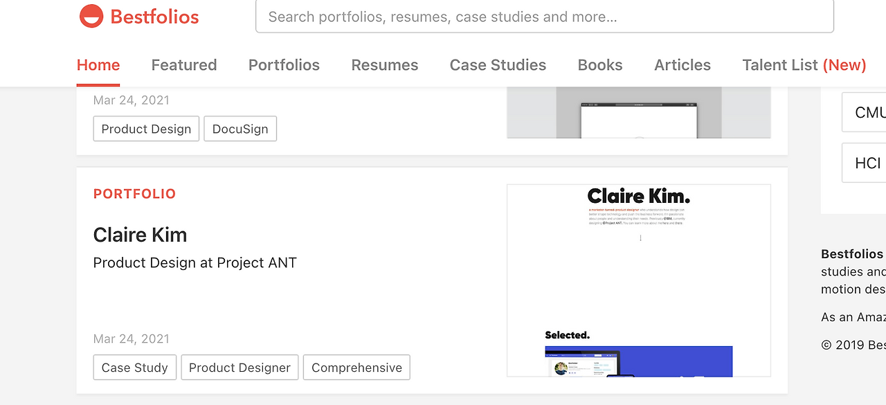 나의 경우 홍보목적으로 올렸던 포트폴리오가 취업 막판에 Bestfolio.com에 선정되어 너무나 감사하게도 메인페이지에 올라온 적이 있었는데, 당시 트래픽이 어마어마하게 증가하면서 인터뷰 제안도 따라왔다. 일단 눈에 띄어야, 지나가는 기회도 잡을 수 있다.
