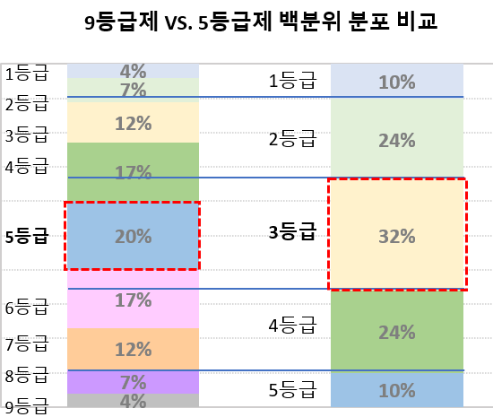 자료 출처 : 9등급제와 5등급제 비교 그래프는 직접 제작함.