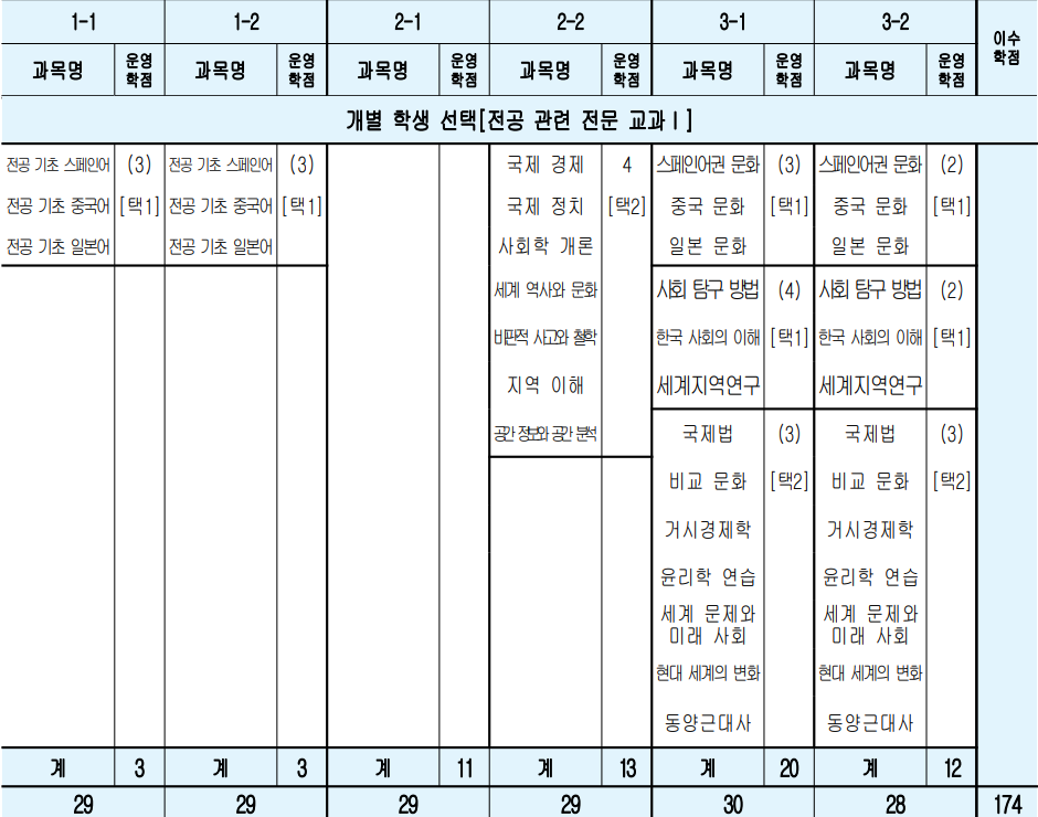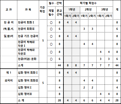 문과형 특목고의 교육편제표를 살펴보자.