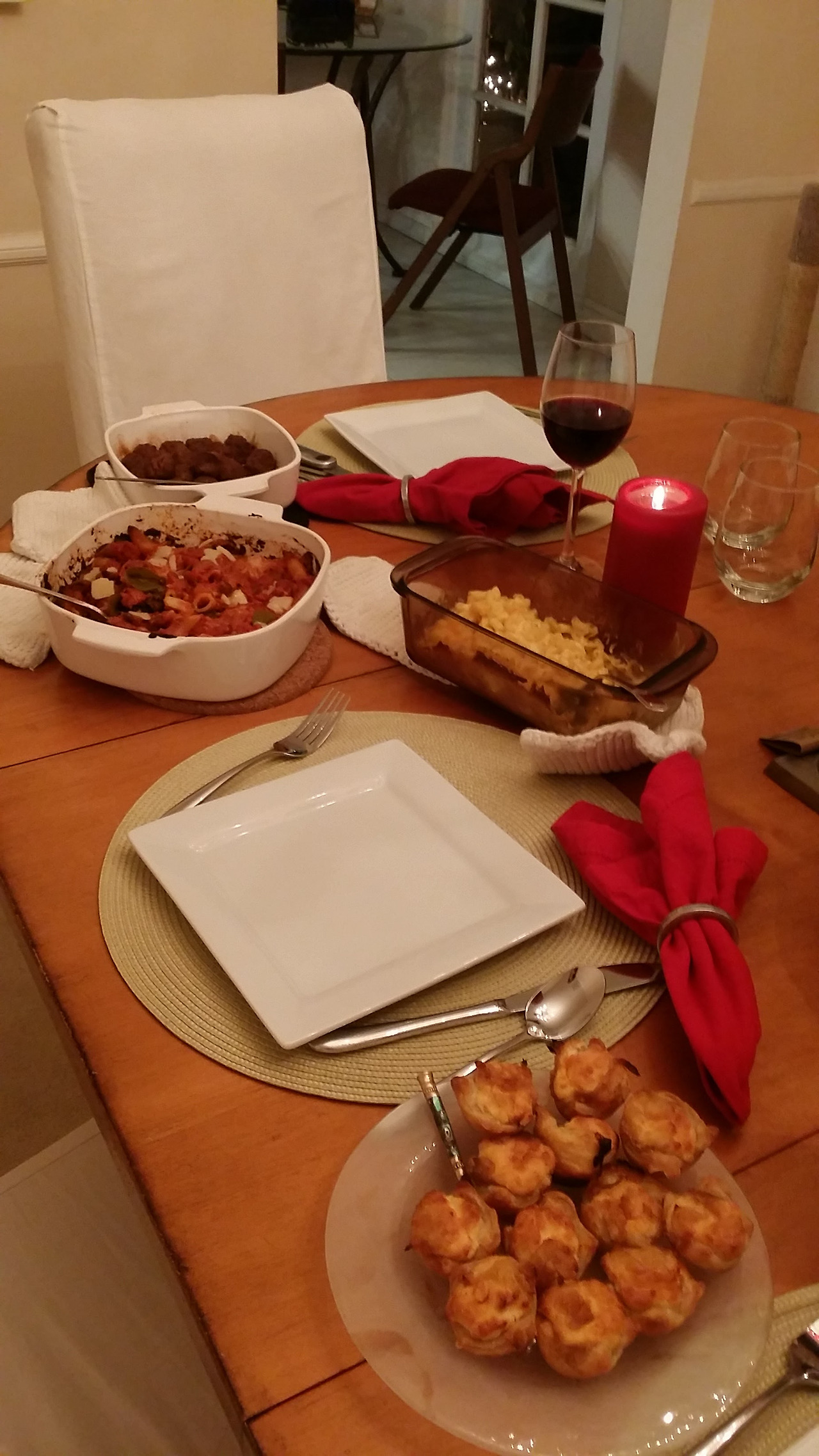애피타이저를 먹으며 호스트도 함께 담소를 나누는 동안 조리가 끝났다는 오븐의 알람이 울리고 (대부분 음식을 오븐으로 조리) 메인 요리가 완성되면 다이닝룸으로 이동한다.