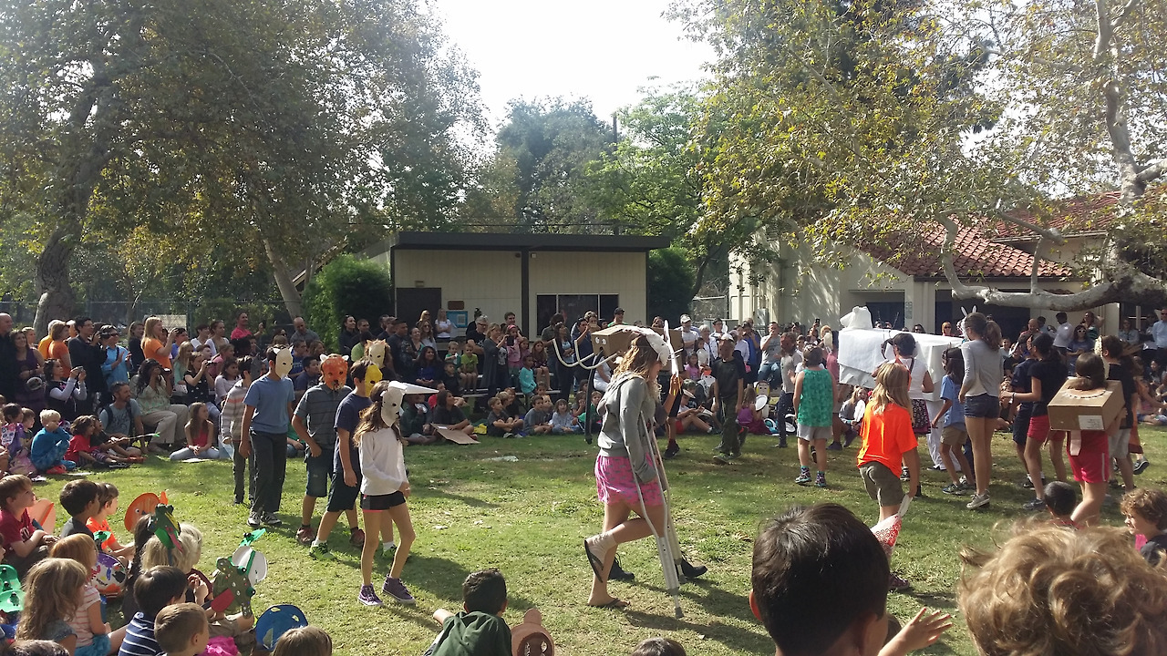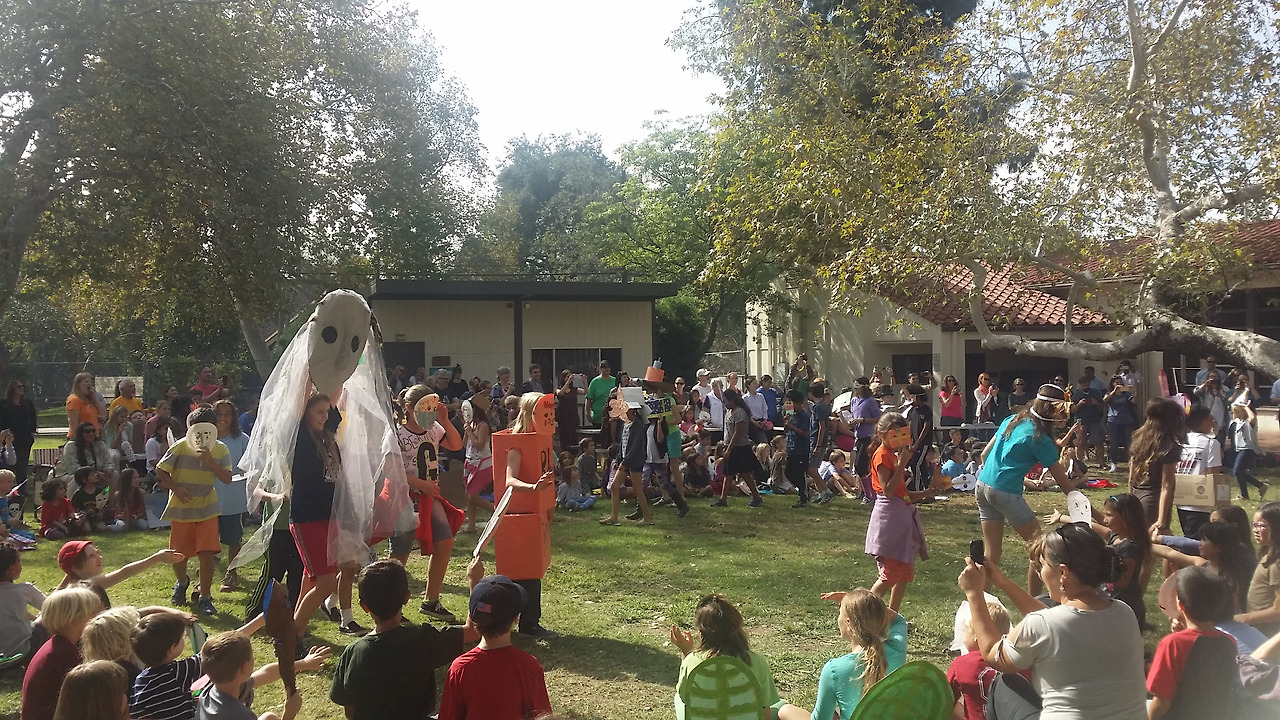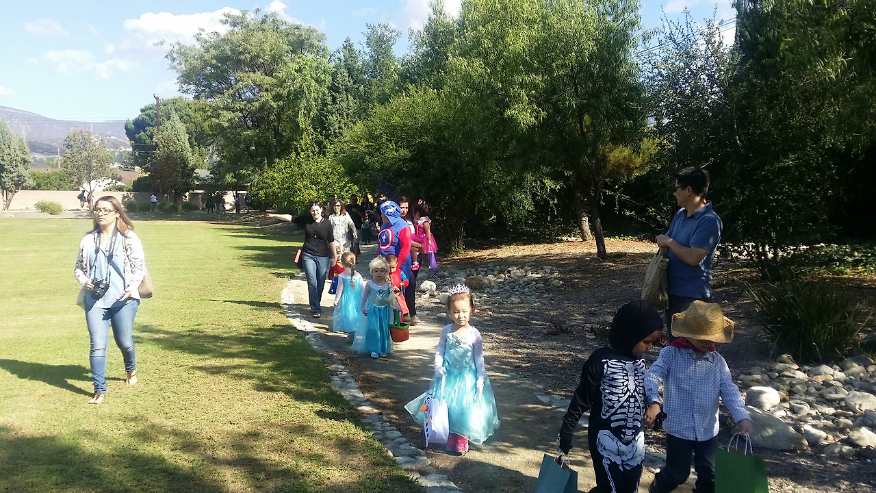 핼러윈을 앞두고 둘째의 프리스쿨에서는 아이들부터 선생님들까지 모두 코스튬을 입고 잔디밭에 앉아 무시무시한 마녀 이야기책을 함께 읽은 후 나무 그늘 아래에서 점심으로 피자를 주문 시켜 먹었다. 식사 후에는 각자 코스튬을 뽐내며 커뮤니티 센터를 한 바퀴 도는데 직원들이 모두 캔디 바구니를 들고 나와 아이들에게 캔디를 하나씩 나누어 준다. 선생님들의 손가락 공연 (puppet show)도 이어진다.
