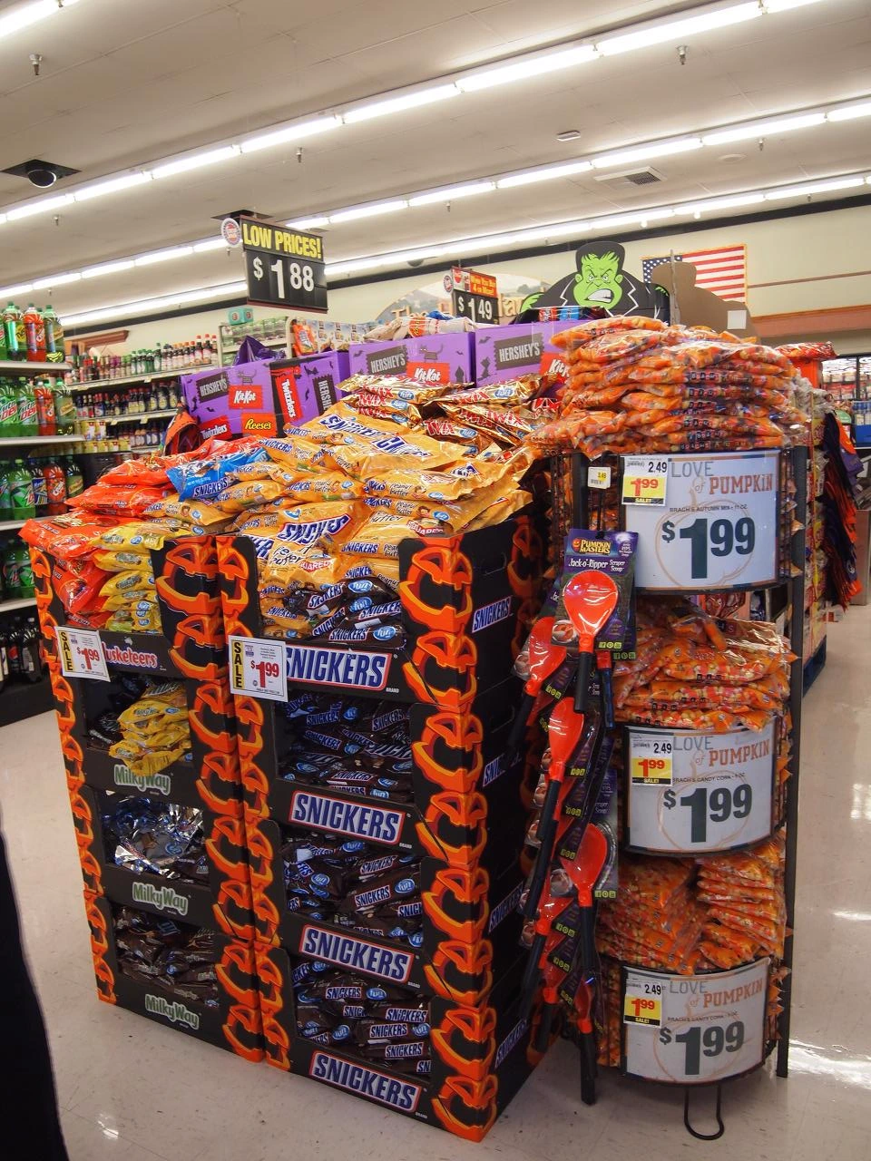 마켓에는 Trick or Treat 때 나누어 줄 대용량 캔디나 초콜릿을 판매하는 코너가 별도로 크게 마련되어 있다.