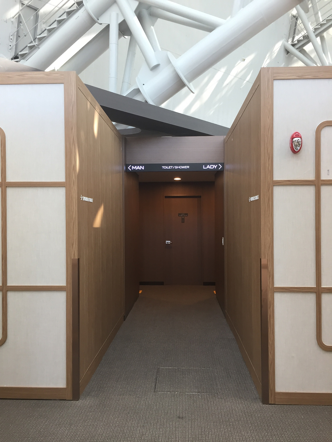 바로 천장이 뚫려 있다는 사실. 문은 자석으로 탈부착되는 파티션이었고 윗부분은 뚫려있다.
