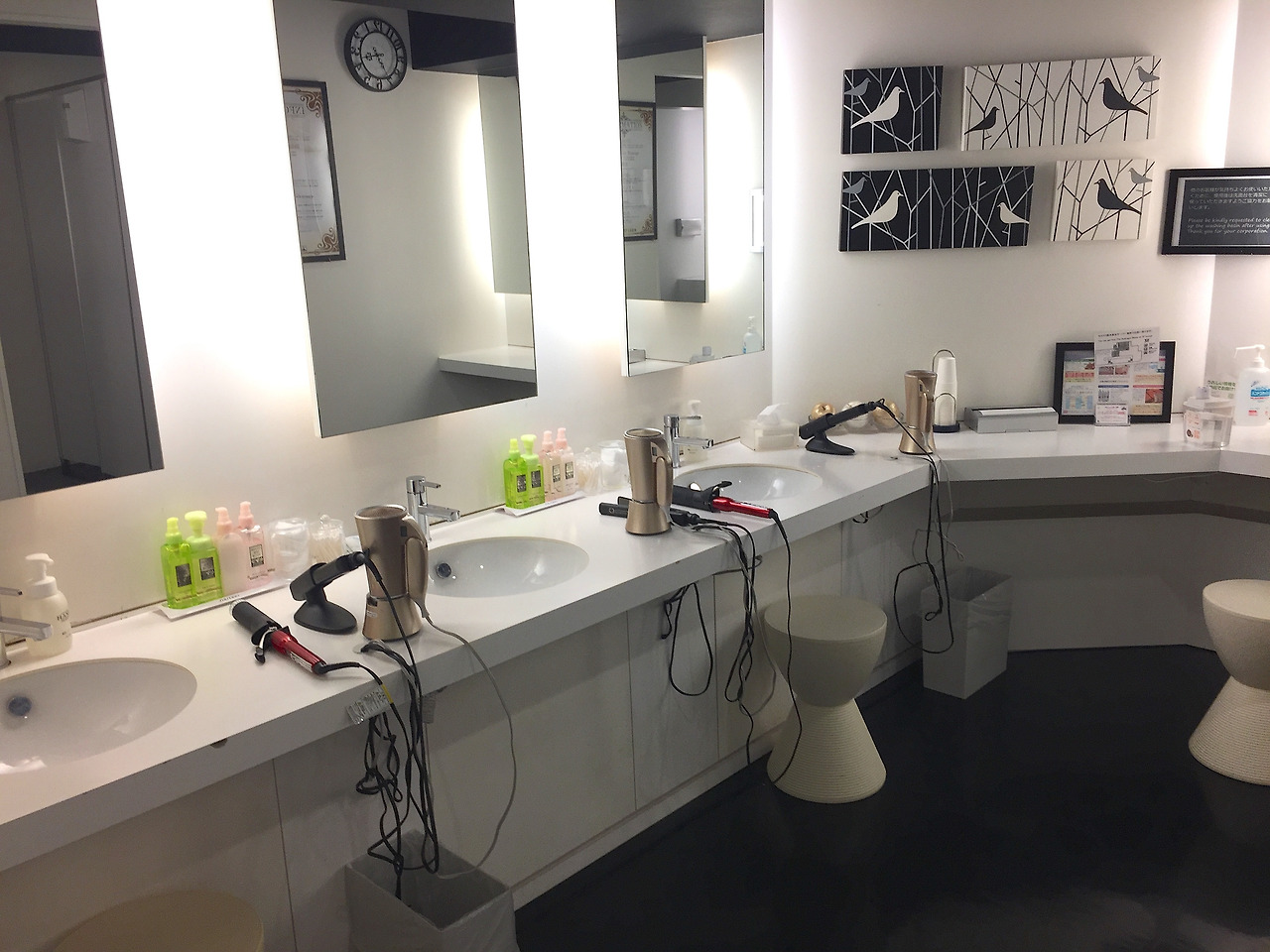 다락휴처럼 문이 있는 1인 샤워실을 기대했는데, 문 없이 파티션만 있는 대중목욕탕 같은 식이어서 좀 놀라긴 했다. 하지만 흠잡을 수 없이 깨끗했고 한 번에 세 명이상이 이용하는 걸 본 적이 없을 정도로 한산했다. 여행 갈 때 다 챙겨가지 못하는 고데기, 헤어드라이어 등 미용용품들이 갖춰져 있는 것도 편리했다. 덕분에 여기서 지낸 이틀간은 머리도 예쁘게 하고 나갈 수 있어 좋았다. 그런 시설들은 여행 내내 묵은 다른 더 좋은 호텔보다 더 세심하게 갖춰져 있었다.