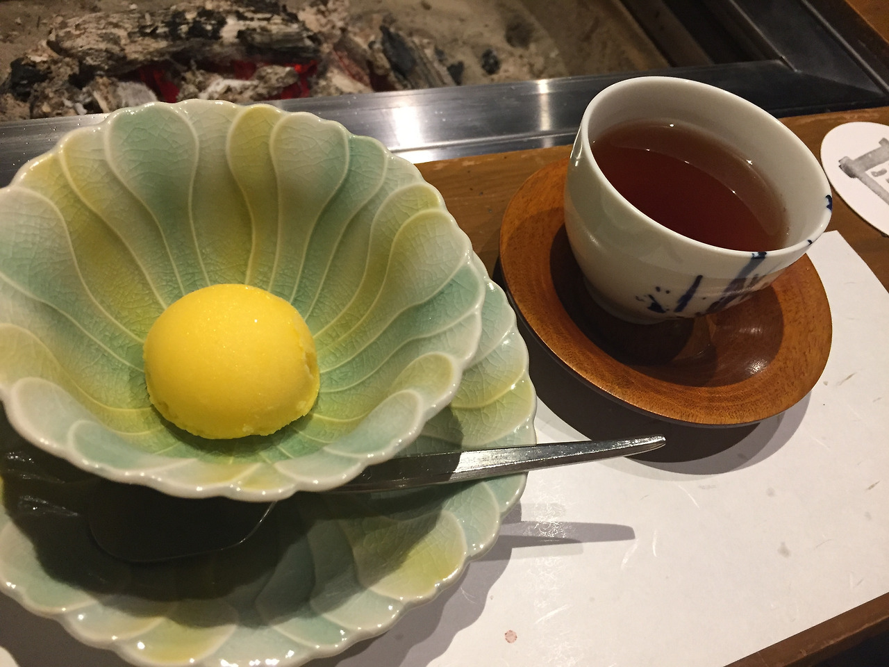 난생처음 솔로 여행을 간 곳이 일본이라 좋았던 건 마음 놓고 혼밥을 할 수 있는 환경이었기 때문이다. 여행 내내 호텔 조식 뷔페도 혼자 잘 먹고 우동도 모스버거도 잘 먹고 다녔는데, 료칸의 코스 저녁 요리는 좀 부담스러웠다. 최대한 멀쩡한 외모라도 갖추자며 화장을 지우지 않은 채 유카타를 입었다. 레스토랑에 내려가 영어로 인사를 하고 여유로운 척 4인용 테이블에 앉았다.