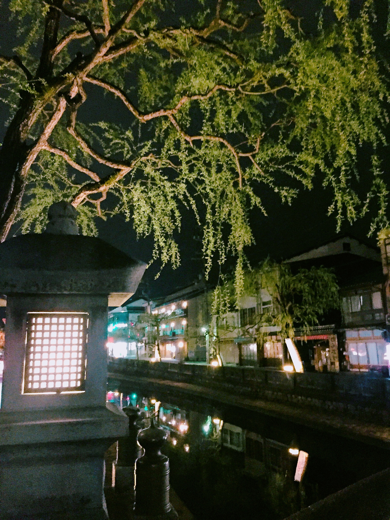 얼음이 되기 직전인 것처럼 찬 복숭아 물을 천천히 마시며 자판기 옆에 있는 나무 의자에 앉아 지나가는 사람들을 보며 열을 식혔다. 비가 그친 밤하늘도 올려다보고, 옛날식 가로등에 비쳐 더없이 운치 있는 버드나무도 봤다. 개운하고 깨끗해진 몸으로 시원한 바람을 맞으며 앉아 있으니 세상 부러울 게 없었다. 아침 일찍부터 기차 타고 이동하고 쉴 새 없이 돌아다니며 머릿속에 들었던 불편한 마음, 부담, 외로움 등 소모적인 감정들이 온천물과 함께 씻겨 내려갔다. 벚꽃여행 중 가장 기억에 남는 밤이었다.
