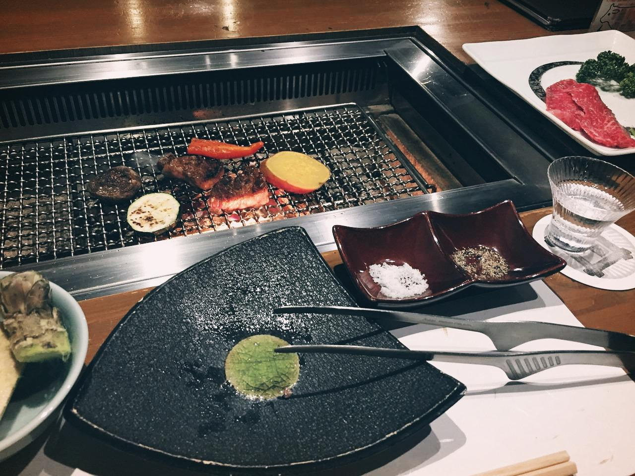 기노사키에서 보낸 하루 동안 혼자 여행 온 사람을 찾을 수가 없었을 정도로 이곳은 가족 여행지였다. 옆 테이블에 십 대 딸 둘이 있는 네 가족은 이미 온천 순례를 끝내고 왔는지 볼은 벌겋고 머리는 젖은 채로 즐겁게 고기를 구워가며 식사를 하고 있었다. 아 나도 온천 끝내고 와서 밥 먹는 거였으면, 하는 생각이 들 정도로 지긋지긋한 소심함을 떨칠 수가 없어 계속 더 따라 마시다 보니 첫 번째 병을 다 비웠고, 음식이 하나 둘 나오기 시작했다.