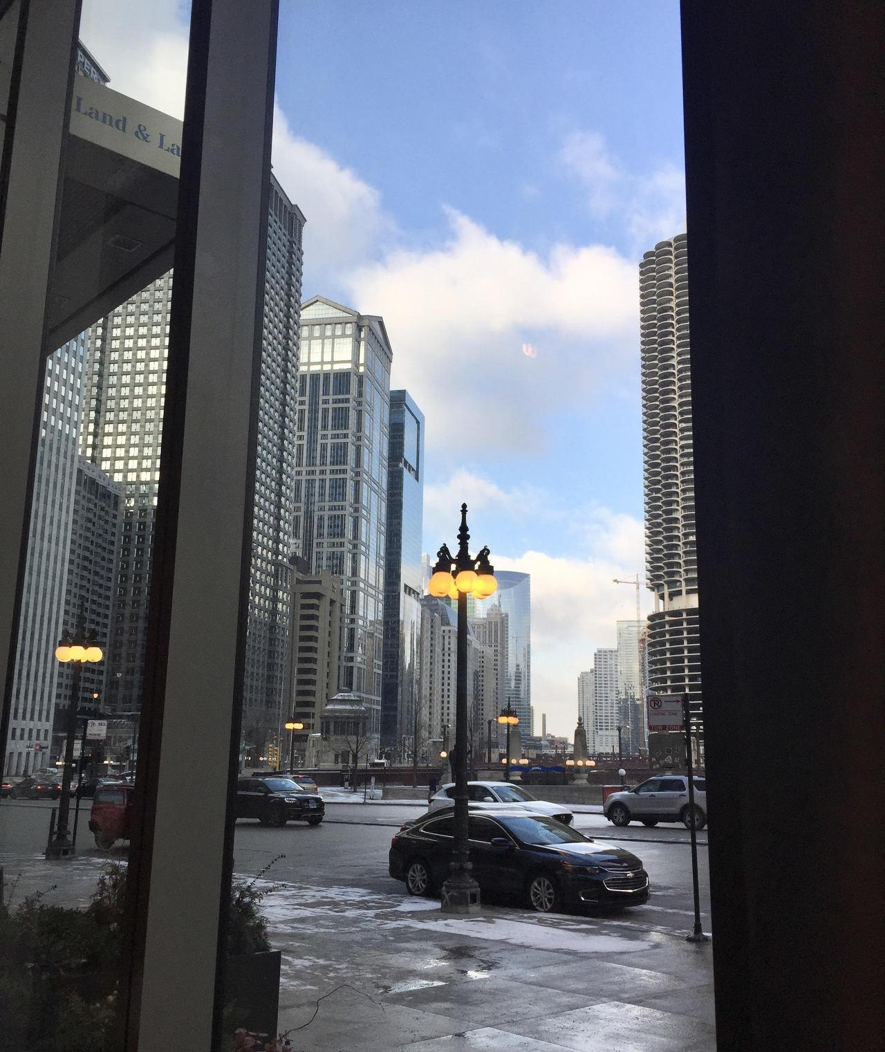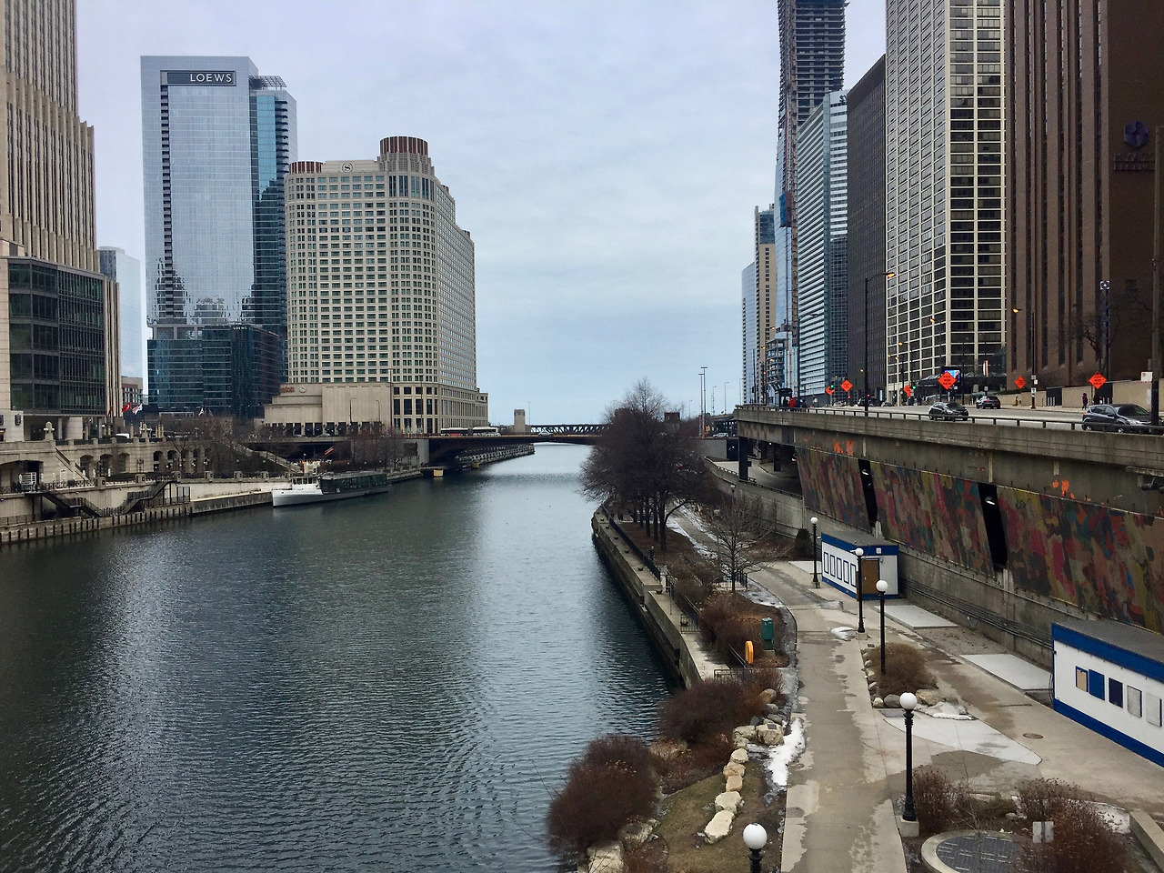 오헤어 공항에서 탄 우버가 호텔에 다다르니 드디어 영화에서 보던 시카고의 풍경이다. 뉴욕같은 대도시지만 왠지 시크하고 절제된 느낌. 가운데 흐르는 강은 뉴욕의 허드슨 강에 비교해 아담하고 잔잔했다.