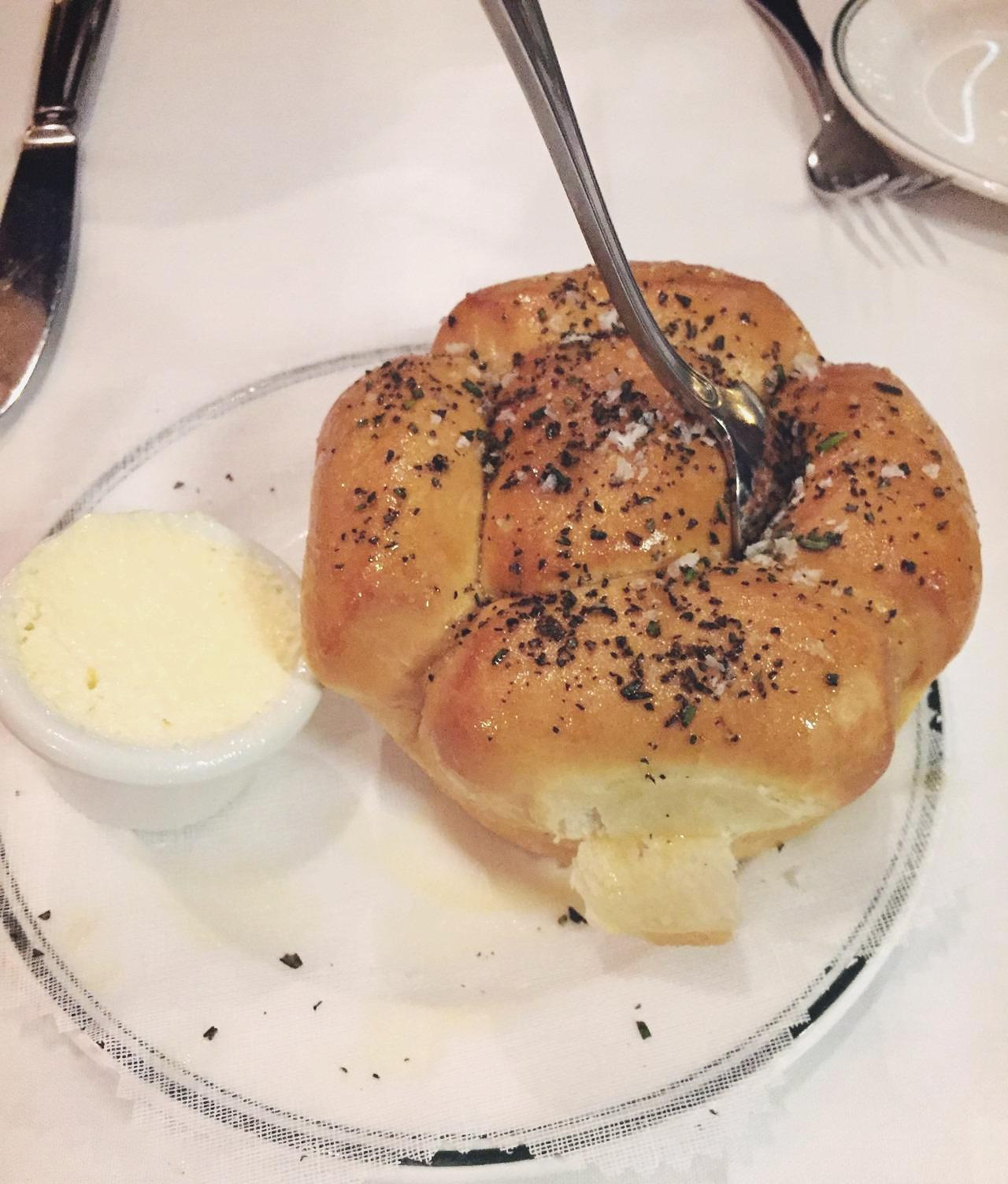 스테이크로 유명한 뉴욕에 오래 살다 보니 유명하다는 스테이크 맛집엔 한두 번씩 다 가봤지만 이 집처럼 식전 빵이 특별한 곳은 없었다. 버터와 허브향이 물씬 나는 빵은 따뜻하고 폭신폭신 가벼운 질감이다. 겉은 짭조름한데 속은 미세하게 달짝지근해서 같이 나온 버터와 환상의 조합이다. 따뜻한 빵을 떼어내 버터를 발라 먹으면 스테이크를 기다릴 수 있는 무한한 인내심을 준다.