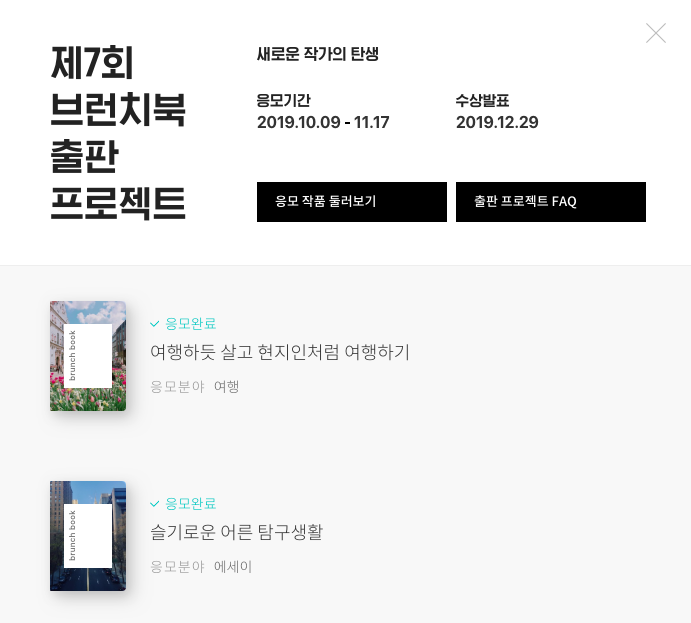브런치 북 프로젝트에 관한 알림글을 본 건 9월 말이었다. 브런치를 시작한 지 1년 정도 된 시점이었다.