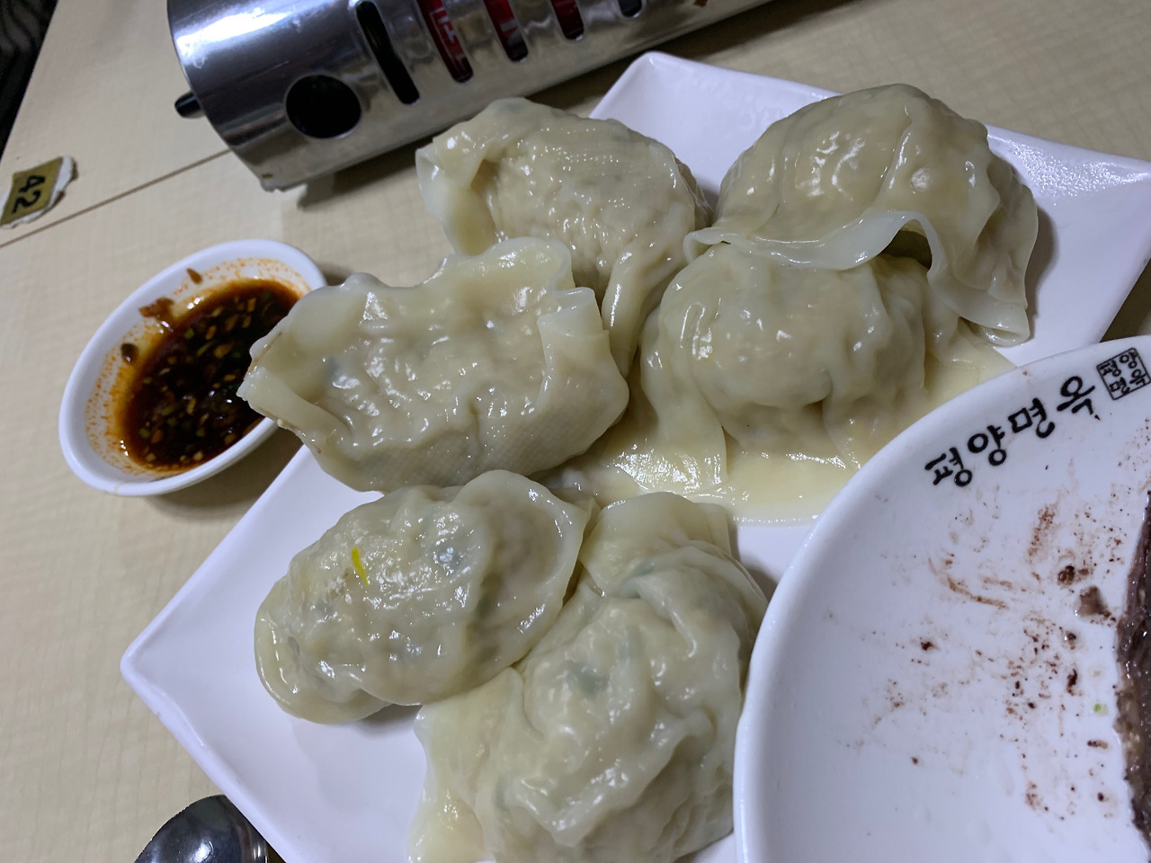 나를 비롯해 같이 자리에 앉아있던 다른 사람들에게는 생소한 맛의 이북식 만두가 남편에게는 흐릿해진 기억마저 또렷하게 일깨워주는 익숙한 맛이라는 게 신기했다. 우리가 어복쟁반을 먹고, 담백한 평양냉면에 식초를 넣니 겨자를 넣니 하며 화기애애한 와중에도 남편은 정신은 온통 만두에만 가 있었다.
