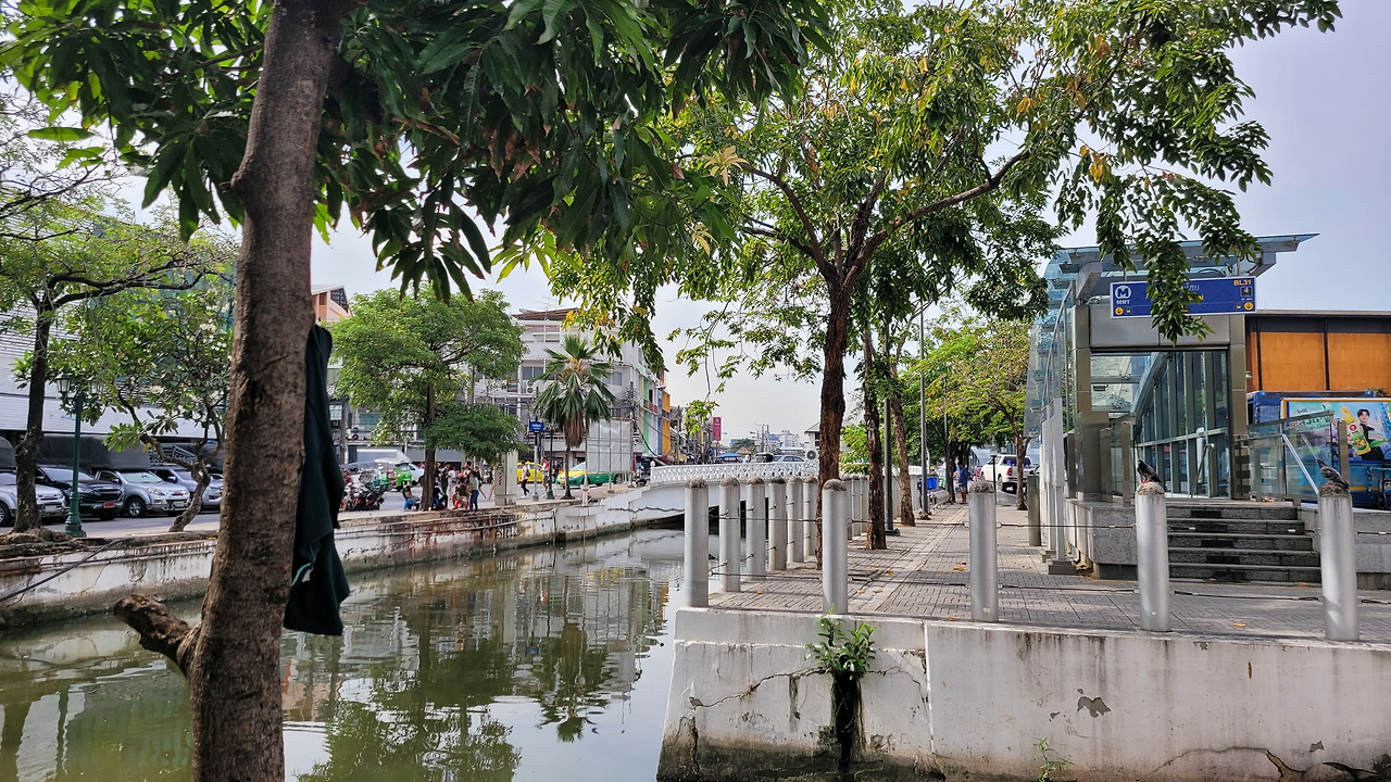 사남차이역 출구 옆으로는 물이 흐르고 있었다.
