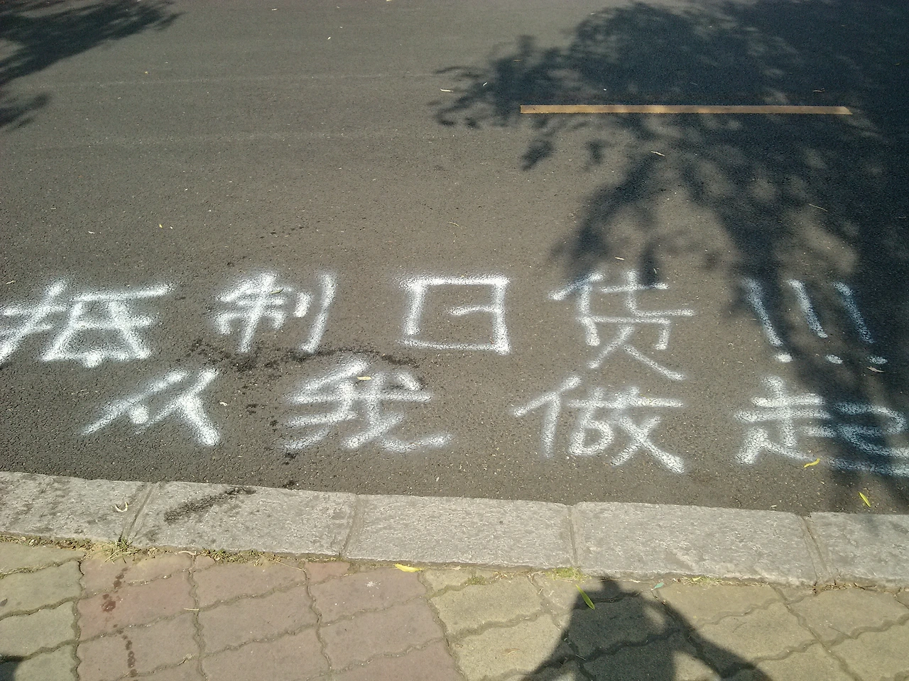 중국에 살면서 알게 된 것 중 하나는 중국이 일본을 엄청나게 싫어한다는 것이다. 2010년대 초, 중국에서는 엄청난 혐일 시위가 있었고, 유니클로를 비롯한 여러 일본 매장들이 말 그대로 정말 '박살'난 사진들이 인터넷 기사들을 수놓았다. 일본 차를 탄다고 해서 끌려 나와 맞은 차주도 있었다. 그래도 대련은 비교적 조용히 넘어가나 했는데, 어느 날 집에서 학교로 가는 길, 길가 위에 마카로 쓰인 다음의 글을 목격하였다.