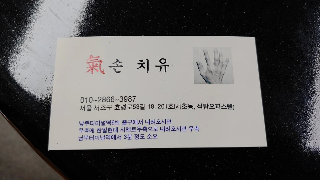 회사 다니면서 너무 피곤하고 힘들어서 마사지라도 받으려고 검색하다 찾은 '기 손 치유'. 반신반의하면서 갔는데 꽤 괜찮아서 벌써 세 번을 갔다.