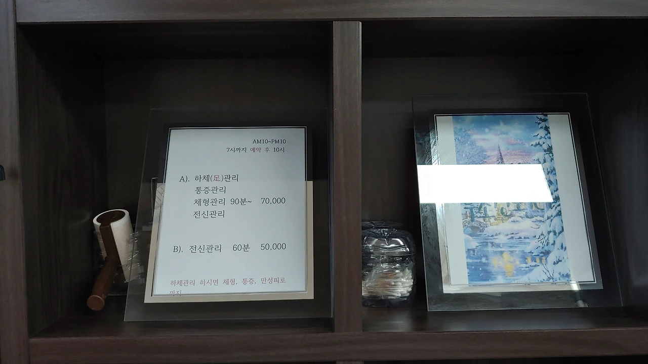 내부는 이런 모습이고 안쪽 베드에서 관리를 시작한다. 발 관리에서 전신으로. 근육 테스트로 약한 부위를 찾고 원장님이 기 흐름이 약한 곳을 또 체크해서 풀어주시는 방식이다.