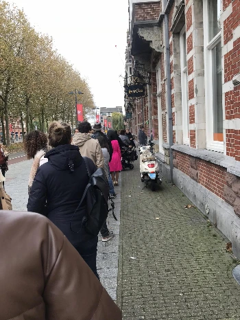 내가 흐로닝언으로 향한 토요일도 예외는 아니었다. 줄이 길어서 순간 기차 시간을 놓치지 않을까 걱정했지만 생각보다 빨리 사람이 빠졌다. 15분 정도 기다린 것 같다. 보쉬볼 말고도 맛나보이는 디저트가 많아 잠깐 고민했지만 가장 베이직하게 볼 6개를 사가기로 했다. 밖으로 나오니 내가 줄 섰던 것보다 훨씬 더 긴 줄이 늘어서 있다. 와우.