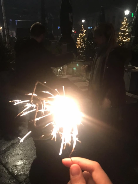 대망의 31일 저녁, 우리 셰어하우스에서 크리스마스 겸 신년 행사로 디너파티를 열어 다같이 배 터지게 먹었다. 각자 친구들과의 약속이 있어 헤어지고 우리 셋은 11시 50분부터 샴페인을 들고 틸벅 시내로 나갔다.