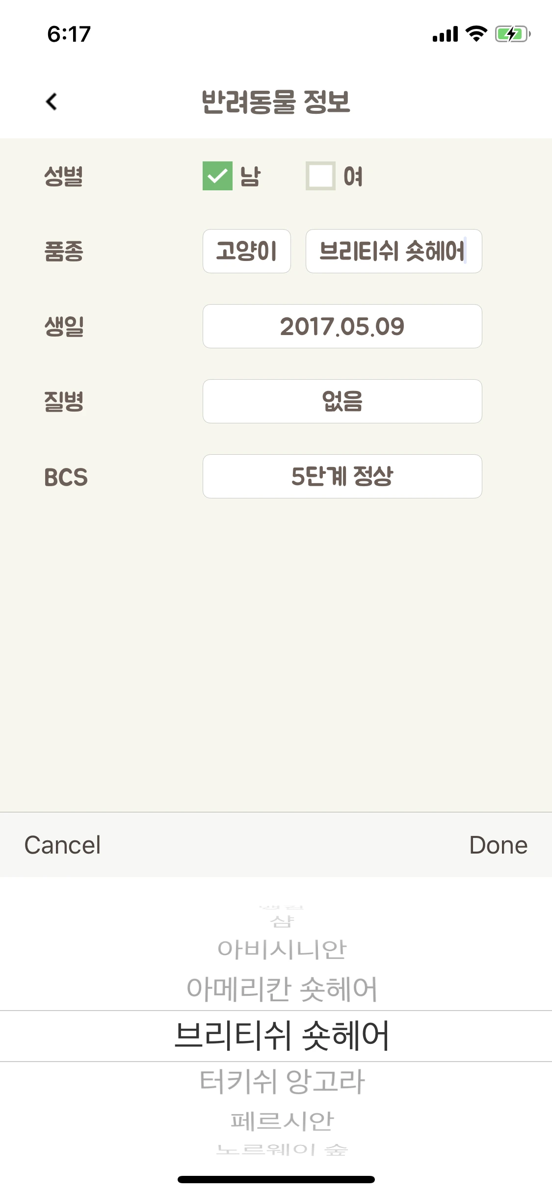 반려동물 정보를 등록하는 화면에서는 등록된 품종이 현저하게 적다. 게다가 반려동물을 1마리만 등록 가능하다. 춘수의 경우 먼치킨으로 수컷 성묘를 기준으로 4킬로그램이 표준이나 먼치킨 고양이가 등록된 품종에 없어서 겨울이로 등록하면 겨울이가 홀쭉하게 등장한다. 좀 더 다양한 품종과 표준 몸무게가 적용되기를 기다린다.