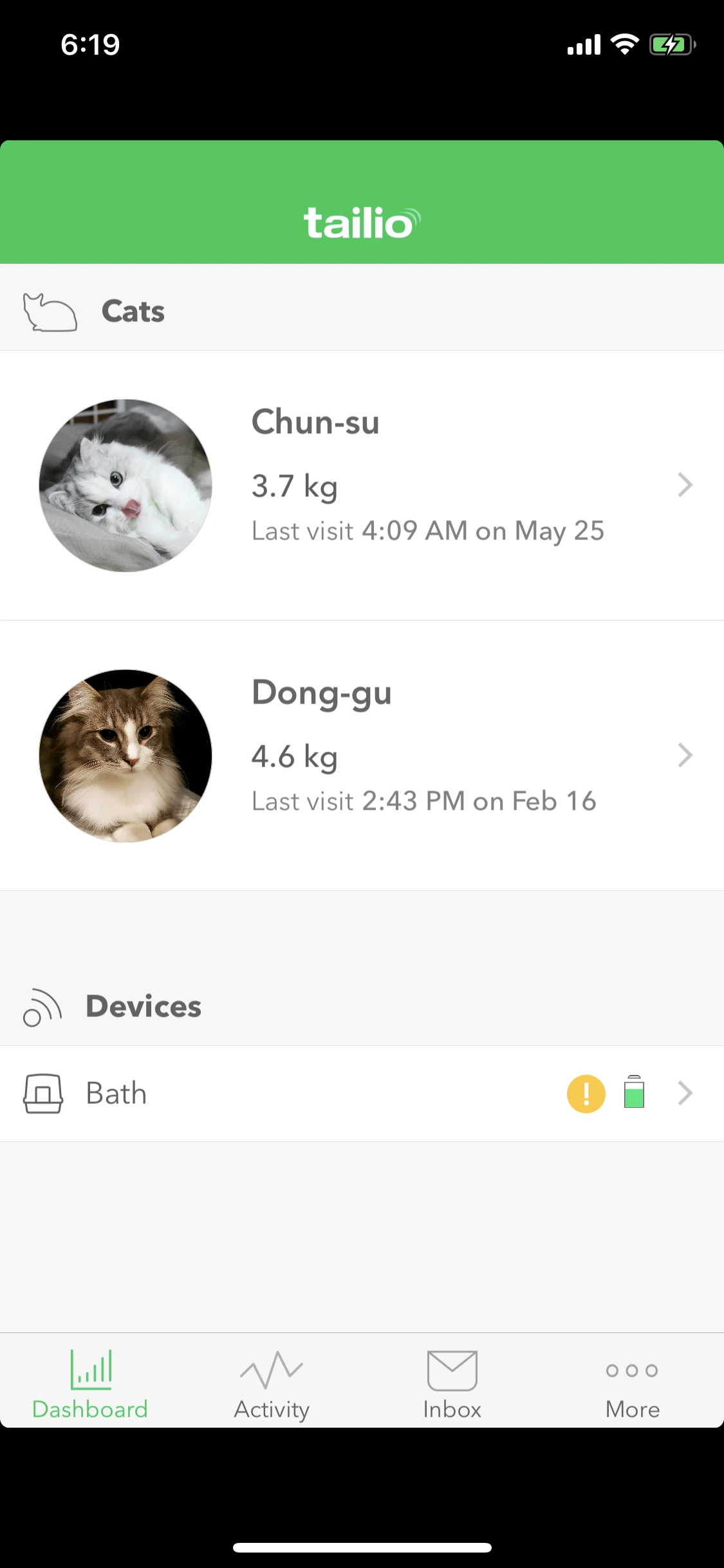 춘수와 동구의 경우 Tailio라는 스마트 체중계를 사용하고 있다. 이 제품은 Pet Wireless라는 회사가 미국 크라우드 펀딩 플랫폼인 킥스타터를 통해 론칭한 제품이다. Tailio는 현재 $199로 홈페이지에서 판매되며, 국제 배송도 된다. 충전 가능한 AA 배터리와 충전을 할 수 있는 충전 케이블도 동봉되어있다. 다만 케이블은 110V지만 240V까지 호환 가능하다.
