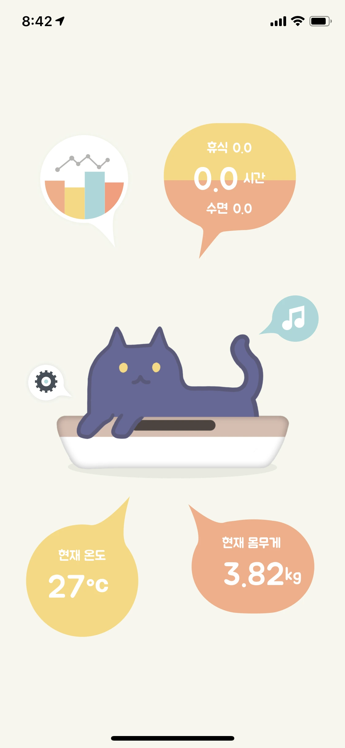 '한국에도 이런 제품이 있었으면 좋겠다'라고 생각할 무렵 한국에도 반려동물을 위한 스마트 체중계가 출시를 준비하고 있다는 소식을 고양이 커뮤니티를 통해 접했다. 포그미(Pogme)라는 귀여운 이름의 이 제품은 고양이뿐만 아니라 강아지도 사용할 수 있는 제품인데, Tailio와 달리 하우스로 접근하는 점이 달랐다. 아이들이 쉬는 하우스라는 점에 집중하여 온열 기능이 포함되어있고, 놀랍게 온도와 습도를 스스로 측정하기도 한다. 하우스로 쓰기 때문에 역시 강제성이 없는 편이지만, 아이에 따라 하우스를 선호하지 않을 수 있으므로 어떻게 이 스마트 체중계에 아이들이 거부감 없이 접근할 수 있을지가 가장 큰 고민거리였다. 다행히 잘 쓰던 하우스가 있는 곳에 포그미를 가져다주니 아이들이 금세 적응했다. 원래 포그미 전용 방석이 있지만, 아이들이 더 좋아하는 재질의 방석을 깔아주니 훨씬 더 많이 사용하게 되었다.
