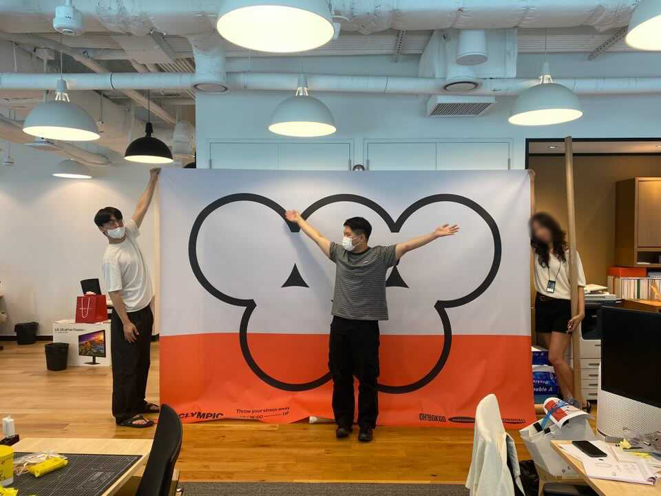 자, 이제 클림픽이라는 컨셉에 맞게 오피스를 꾸며볼 차례였습니다. 클림픽 팀은 포스터뿐만 아니라, 다양한 시각적인 재미를 주고 싶다는 아이디어를 실현시켰습니다. 미디어 포스터를 영상으로 제작했고, 이를 사내 디스플레이에 재생하여 클루들의 관심을 이끌었고, 큰 현수막으로 인쇄된 클림픽 로고는 많은 클루들의 포토존으로 활용되게 되었습니다. 프로젝트 팀이 아닌 클루들의 재능기부가 더해져 다방면으로 함께 클림픽을 준비한, 정말 소중한 순간들이었습니다.