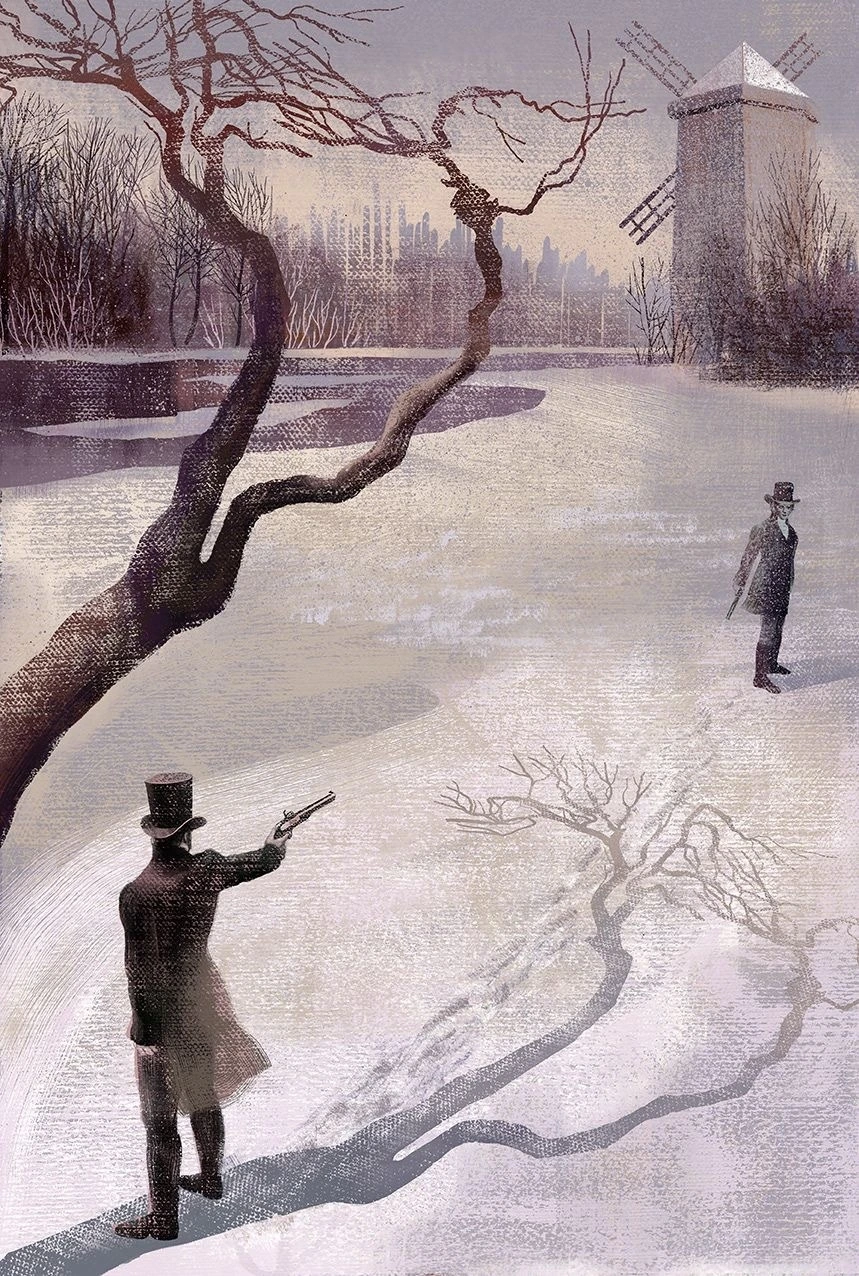 눈 덮인 물레방앗간 앞, 한때 친구였던 오네긴과 렌스키는 총으로 결투를 벌이고, 결국 렌스키는 오네긴의 총에 맞아 죽는다.