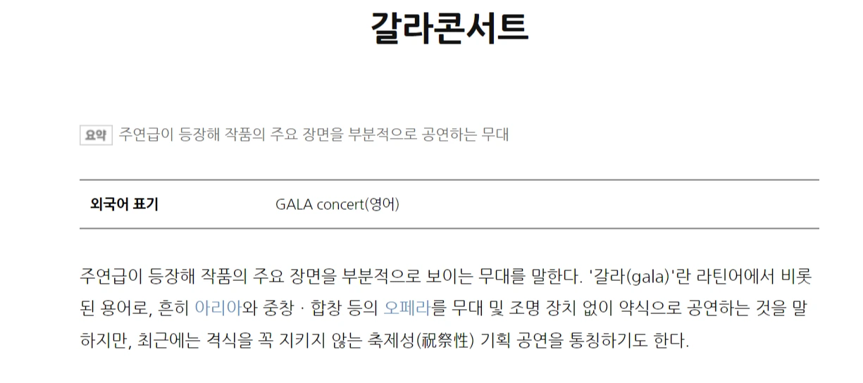 '드레스 리허설'과 '갈라' 라는 단어는 클래식 음악에서 오래전부터 사용되어 오던 용어이다.