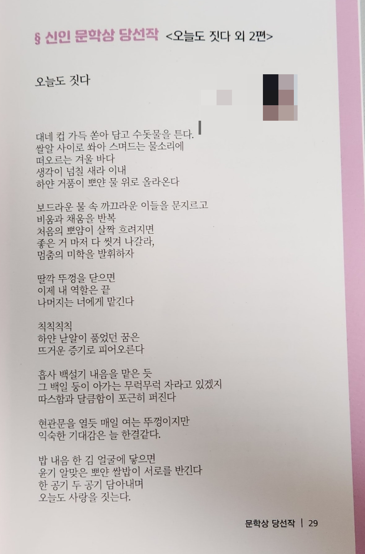 지금도 꿈같이 느껴져요. 다만 드는 생각은, 앞으로 더 진지하게 시를 바라보고 생각해야겠다는 것이에요. 그리고 놓지 않고 계속 써봐야겠다고요.