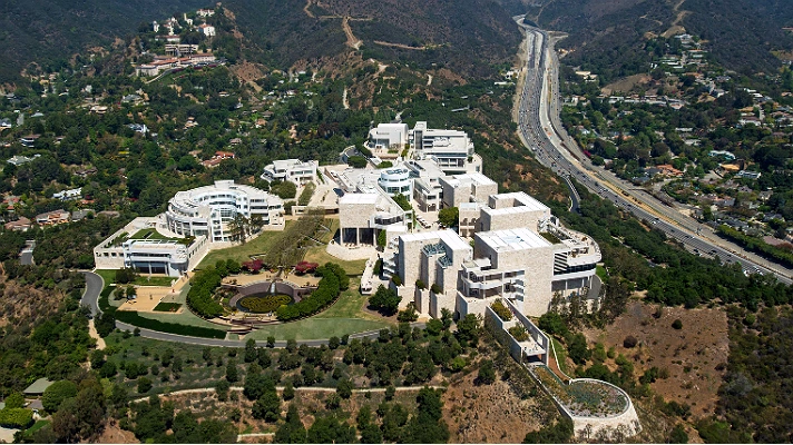 절약하며 살아야 하는 유학생 가족이기에 입장료가 공짜라는 이야기에 기분도 좋기에 집에서 그리 멀리 않은 폴 게티 뮤지움으로 갔다. 그곳은 당대에 미국 최고 부자였다는 폴 게티가 지은 미술관과 저택들로 이루어진 복합예술공간이다. 미술관은 이탈리아 티볼리의 빌라 아드리아나를 모델로 삼았다. 아테네의 아크로 폴리스 언덕을 닮은 LA 서부 말리부 해안가의 브랜우드 언덕을, 주민들의 거센 항의에도 불구하고 부지로 사들여 건축을 강행했다. 이 또한 하드리아누스 황제가 평생 사랑한 그리스 문화에 대한 오마주이다. 폴 게티는 자신이 하드리아누스의 환생이라고 말하여 미친 사람이라는 소리도 들었다. 세계 최고 부자로서의 허세와 그만의 괴팍함을 버무린 유머라고 나는 생각한다.