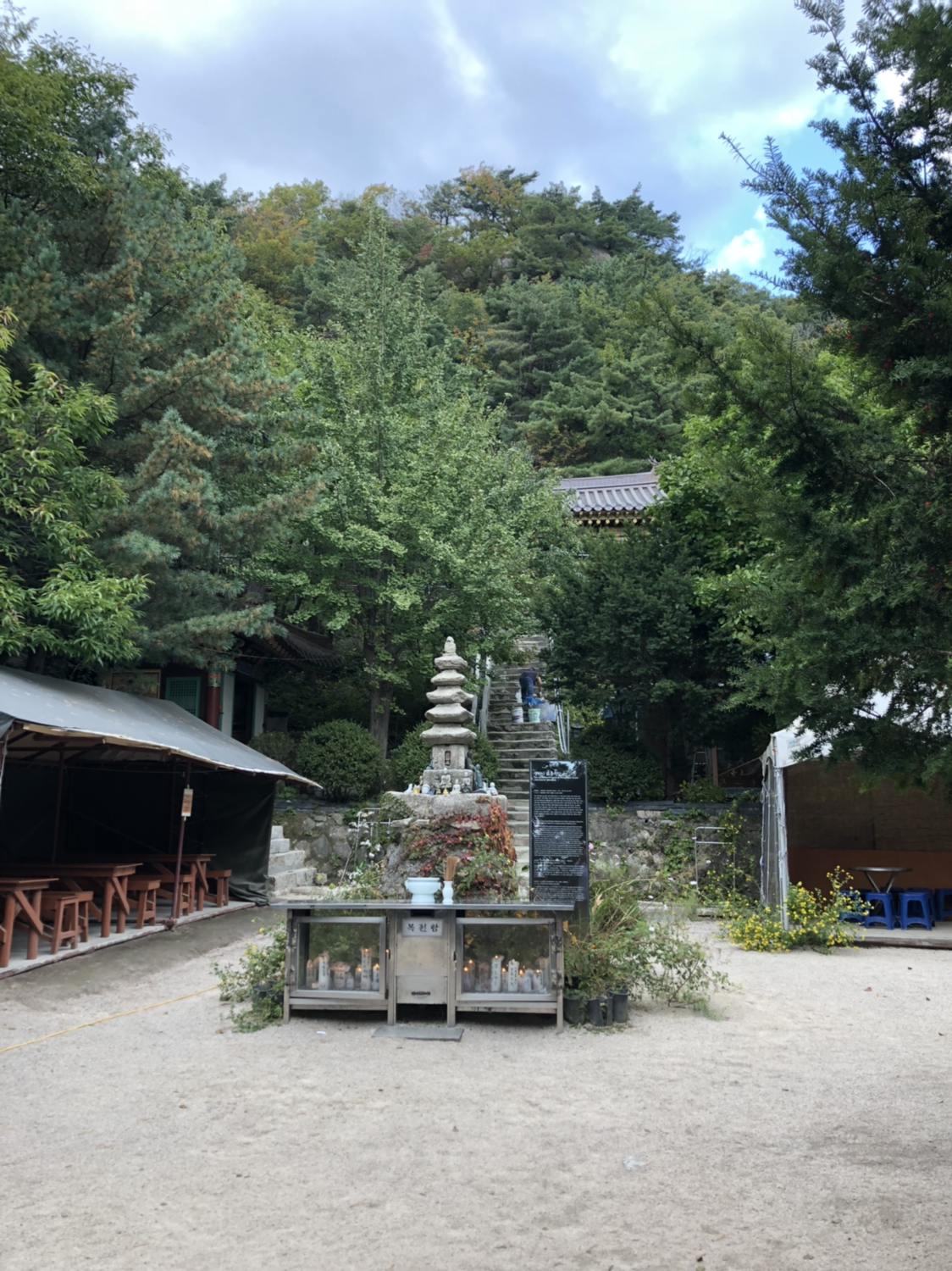 더위가 아직 한창인 9월 초 약속한 날, 바람이 슝슝 들어와 바지보다는 시원한 통짜 원피스에 운동화를 신고 나타난 나와는 달리 등산화와 등산복으로 풀 장착한 그녀를 집 앞 골목에서 만났다. 골목길을 따라 내려가면 바로 나오는 북한산 국립공원 정문 대신 반대로 골목길을 따라 올라갔다. 작은 사찰 마당을 가로질러 우이동 쪽 둘레길로 방향을 잡았다. 주민센터에서 사물놀이와 캘리그래퍼를 가르친다는 그녀는 이 동네 산지가 22년째라고 했다. "저기 저 다세대 주택의 담장에 개구멍이 하나 있었는데 이제는 그곳을 막아 놓아 한참을 빙 돌아가야 둘레길로 들어설 수 있다. 저 사찰은 보기에는 작아도 북한산의 많은 절 중에 기부금이 으뜸이다. 그 많은 시주돈으로 절 앞마당까지 아스팔트 길을 매끈하게 깔았다, 예전엔 보드라운 흙길이 걷기에 참 좋았었는데. 저기 저쪽 대성문 길 중간쯤의 영취사는 추석에 송편을 빚어 마당에 쌓아둔다. 누구라도 지나가는 객은 시간만 잘 맞추면 쫄깃하고 담백한 마성의 송편을 맛볼 수 있다. 둘레길중 바로 이 구역은 동네 주민들이 마실 삼아 많이 찾는 길이라 어두워도 그리 무섭지 않다. 무서움을 많이 탄다면 저녁 8시에서 9시 사이에 오면 된다, 저녁 먹은 후와 저녁 뉴스 하기 전이라 그 시간대에 산책하는 사람들이 제일 많다." 한 동네 주민 22년 구력의 그녀가 풀어내는 이야기들은 만장굴처럼 길었고 페르시아산 태패스트리의 무늬처럼 섬세했다.
