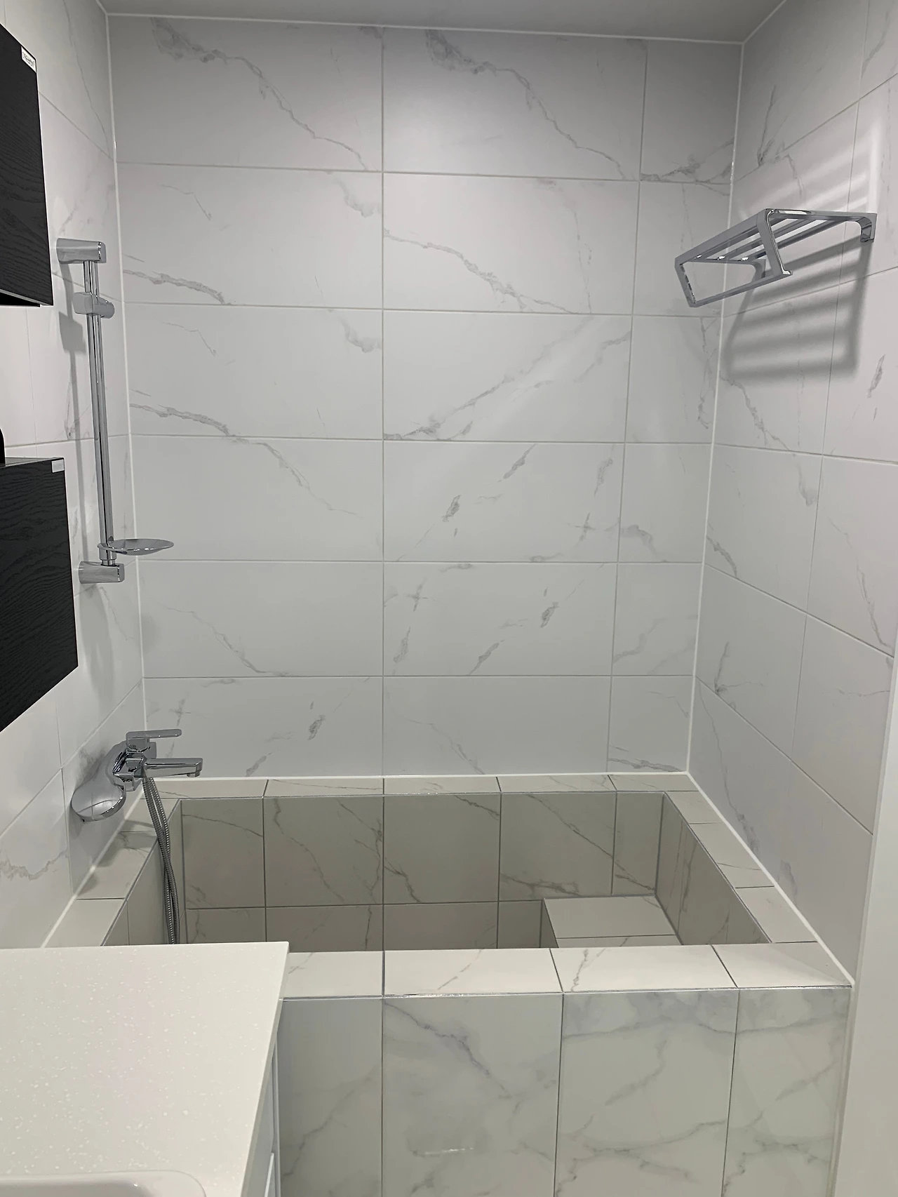 5~6년 전 가평 아난티에서 조적 욕조를 보았을 때 내 가슴은 '웅장'해졌다, ('비대면 데이트'의 '임키'버전으로 표현하면). 무광의 '다크'하고도 '시크'한 회색 조적 샤워부스와 욕조를, 나는 그때부터 열망했다.