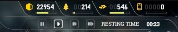 상단에는 자원 / 시간 흐름 / 게임내 현재시간 / 온도 / 시간흐름별 온도변화를 표기해주고.