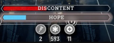 불만도가 일정 수준 이상으로 올라가거나, 희망도가 일정 이상으로 낮아지면, 플레이어를 추방하는 이벤트가 발생. 기타정보의 경우 - 장애인 / 지나치게 추운 온도에 노출된 건물 / 치료중인 인원수를 표기하는 내용