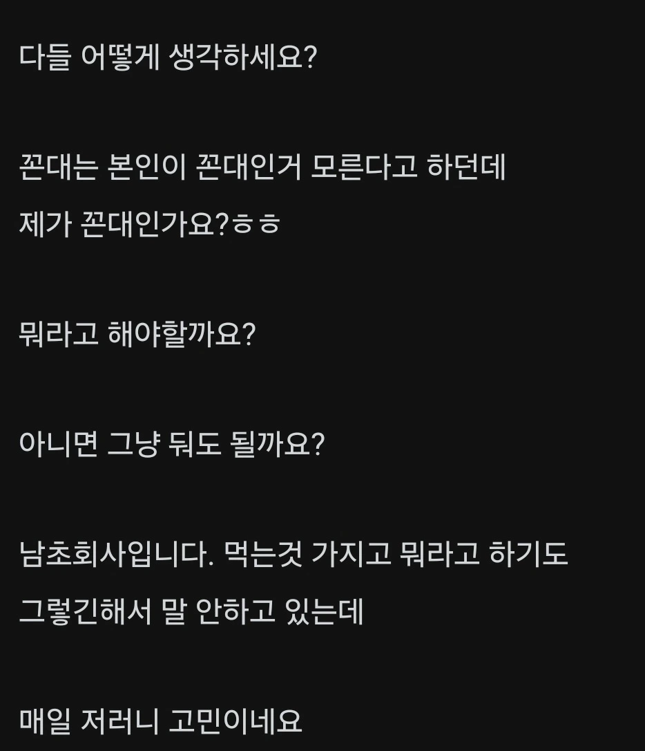 어떻게 대응하는 것이 좋을지 나는 동료들과 얘기해 본 적이 있다. 말하기 곤란한 문제이고 나만 유독 예민한 것일 수도 있어서 소심한 성향의 나와 같은 몇몇은 결국 말하지 못할 것 같다고 했다.