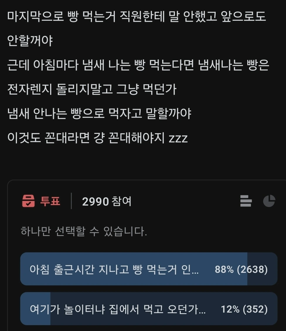 Blind 설문결과 (사무실에서 매일 빵먹는 동료 어떤가?)