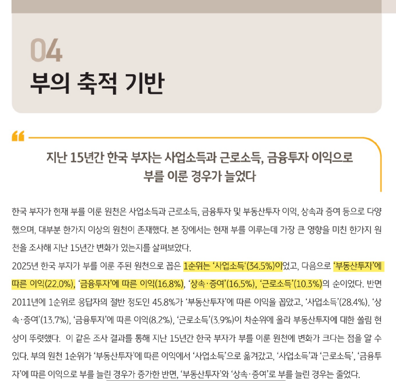 2025년 KB금융에서 발간한 부자 보고서에 따르면 최근 15년간 대한민국에서는 상속을 통해 부자가 된 사례는 점차 줄었고