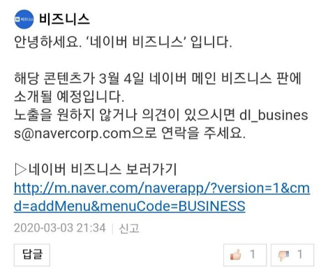 요런 댓글들을 종종 마주하곤 한다. "해당 콘텐츠가 언제 어디에 노출 됩니다. 노출을 원하지 않으면 ~~로 연락 주세요." 사실 내 글이 다음 메인에 노출 되는건 정말이지 기분 좋은 일이다. 지금 까지 발행한 글들 중에서 3개 정도가 메인에 노출 되었었고, 3~4일 정도만에 조회수는 2천 ~3만까지 늘어나기도 했다. 개인적으로 기념하기에도 좋고, 포트폴리오로 차곡 차곡 간직하고 있기도 하지만 한편으로는 내 글이 다음 메인에 노출 된것이 부담스러운 경우도 있었다. 전문성없이 쓴 글이 다음 메인에 실려 괜한 마음에 글을 작가의 서랍에 숨겨버린 경우도 있었다. 미리 댓글로 브런치 글의 노출 예정을 알려주신다면 감사할것 같다.