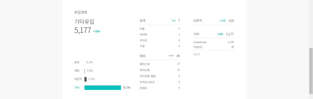 기타 유입을 좀 더 상세하게 만드는 방법도 있다. 기타의 url이 단순히 m.daum.net이나 www.daum.net인데 이 링크를 누르면 자동으로 내 글이 전시되고 있는 페이지로 연결 되는 방법도 있을것 같다.