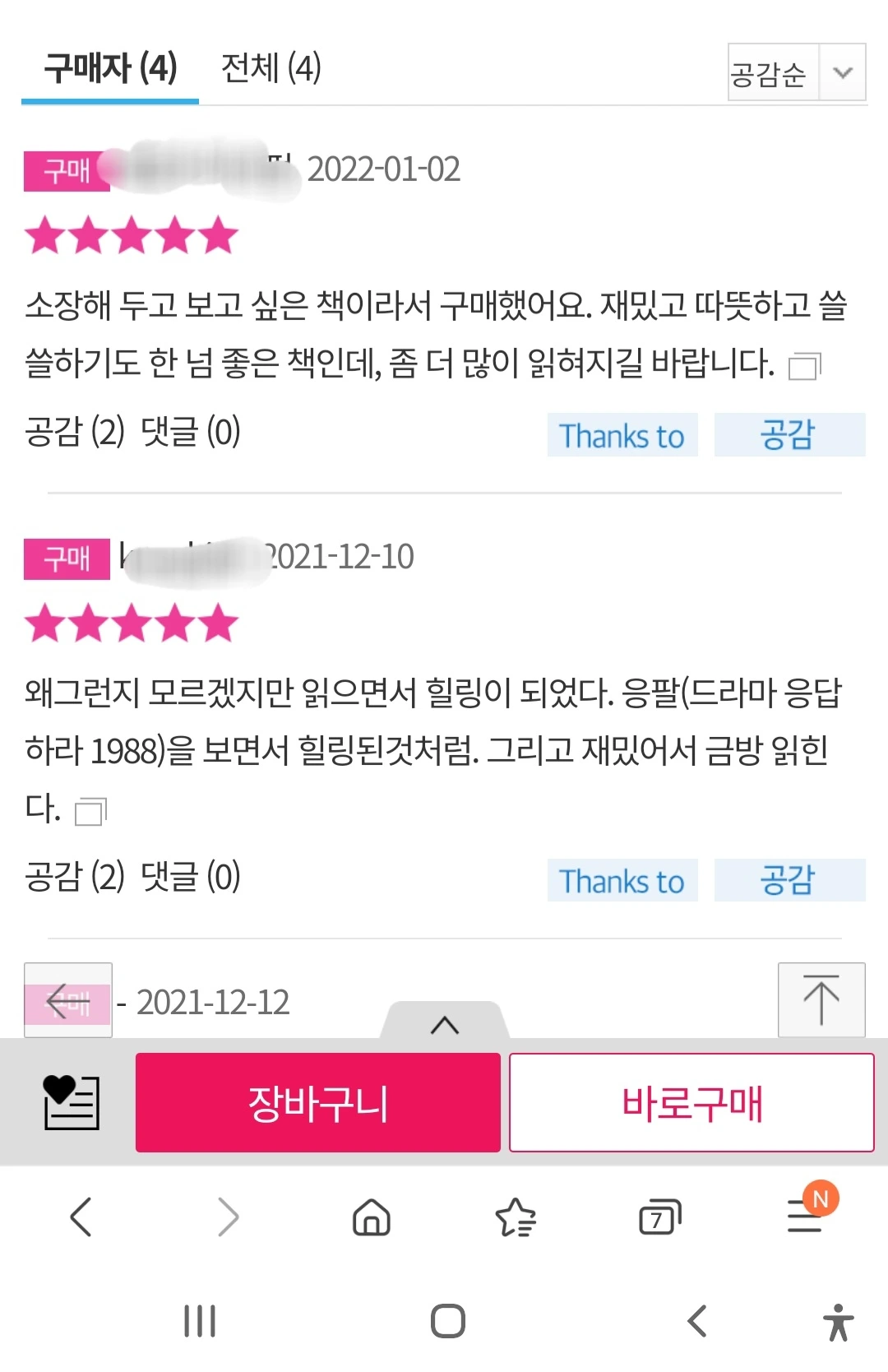 인터넷 짧은 서평 하나에 마음이 녹는다.