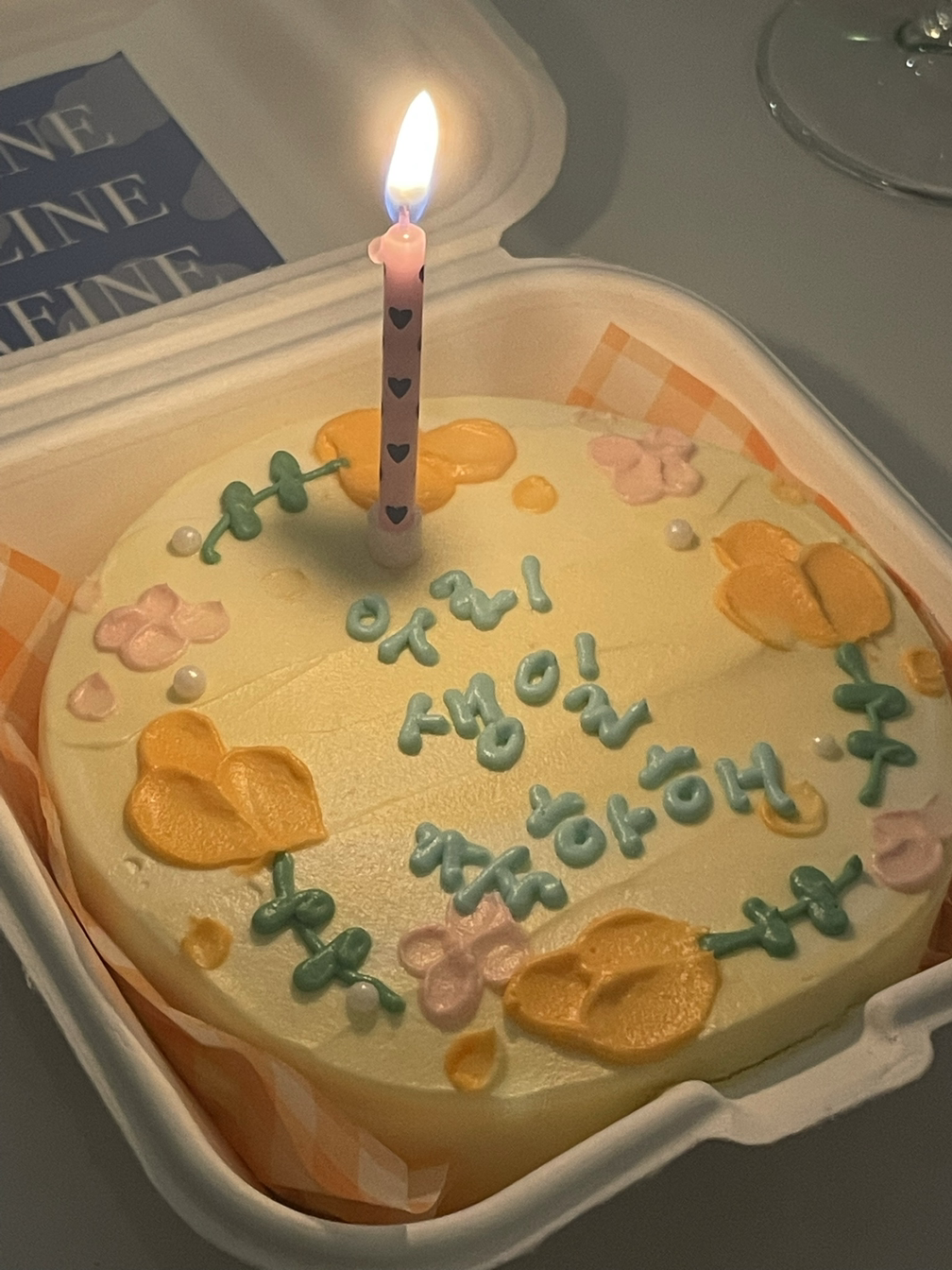 눈물을 닦고 있을 때쯤 동생과 친구가 도착했다. 음식을 잔뜩 시켜놓고 이런저런 얘기를 하다가 생일 케이크 초를 불었다. 동생이 주문 제작해온 케이크가 너무 맘에 들어서 진실의 미소가 나왔다. 소리 내서 웃고 사진을 잔뜩 찍었다.