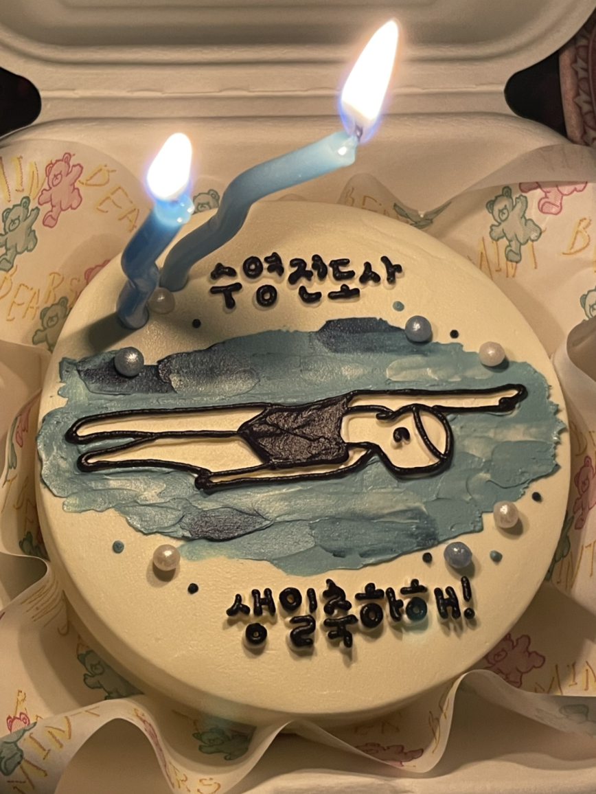 알고 보니 내 수영스승이자 친구가 동생과 깜짝파티를 준비한 것이었다. 사실 남수친까지도 같이 준비했는데 일정이 확실치 않아 그냥 혼자 왔다고 한다. 화성에서 여기로 올 생각을 한 남수친에게도 감동이고, 이 비에 선물과 케이크, 꽃까지 들고 와준 친구에게도 큰 감동을 느꼈다.
