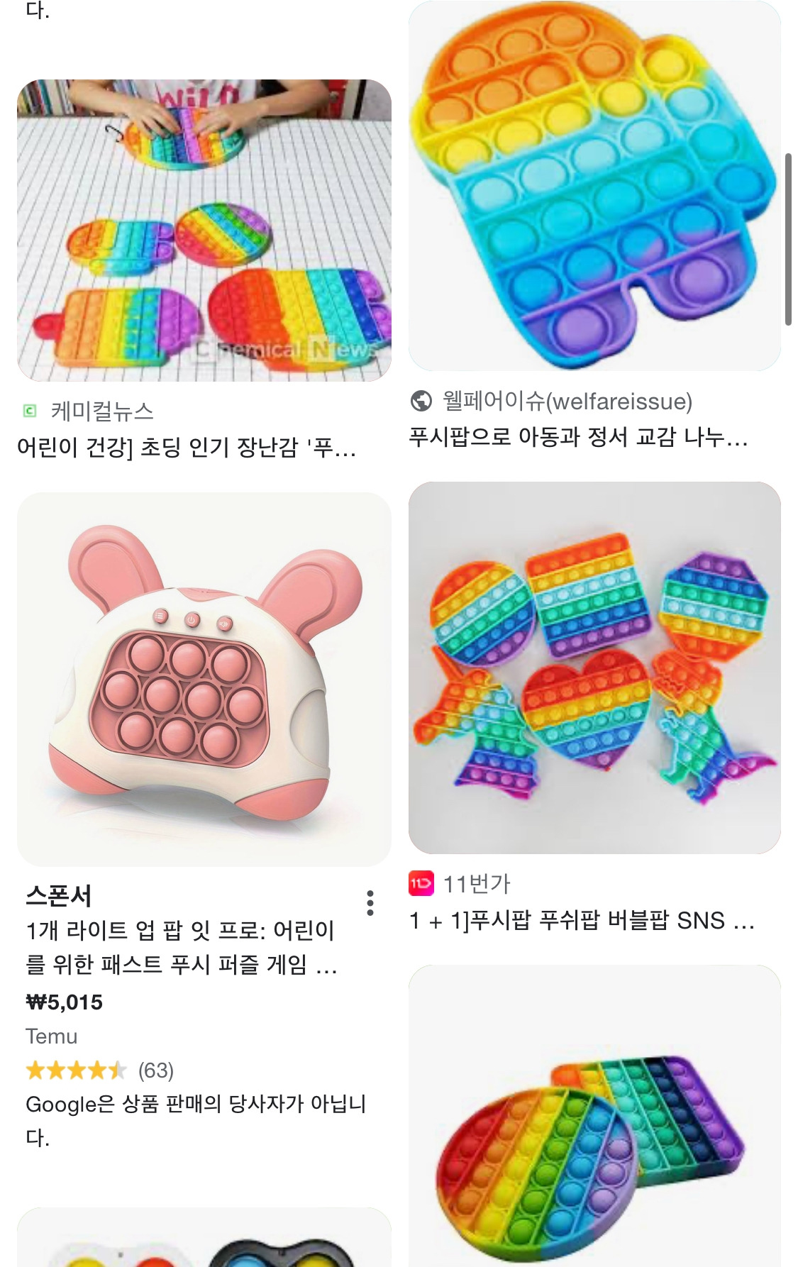 그럼 저게 뭐지? 하던 찰나에 홍진경 유튜브에서 푸시팝을 봤다. 홍진경의 초등학생 딸이 재밌다며 갖고 노는 모습을 보여줬는데, "참 별게 다 재밌다. 저런 게 유행이라니, 아무리 요즘 애들 요즘 애들 해도 애들은 귀엽네." 하고 넘어갔다.