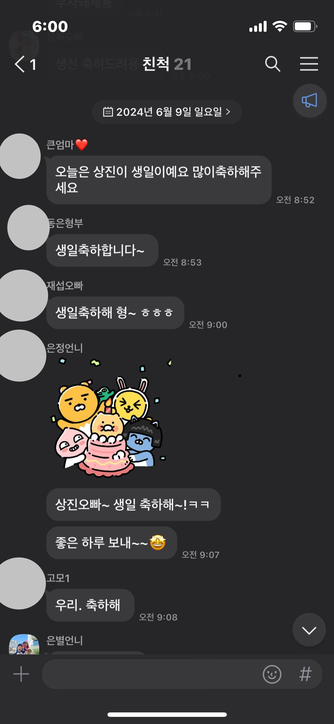 나는 구글캘린더를 쓴 지 오래다. 한 번 적어두면 매년 알아서 일정을 업데이트해 주고 당일에 알림까지 해준다. 이런 신기술을 사용하는 나는 지인의 생일을 놓치기 일쑤인데 우리 큰엄마는 한 번도 놓치는 일이 없다. 누군가의 생일이 되면 21명이 있는 우리 가족들 단체카카오톡 방에 축하 메시지를 보내신다. 대화방에 없는 아기들까지 더하면 매년 30번의 생일을 챙기는 셈이다. 그렇게 우리 가족은 적어도 매년 30번의 안부를 주고받는다.