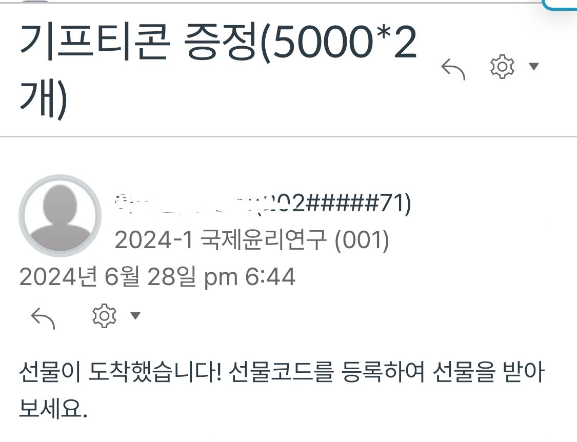 그런데 종강과 함께 메일을 받았다. 피드백 MVP로 선정되었다는 메일이었다! 교수님이 학기가 끝날 때 자신에게 가장 도움이 되는 피드백을 준 사람을 한 명씩 써서 내게 했다. 그리고 가장 많이 언급된 사람을 MVP로 선정해서 10,000원 상당의 기프티콘을 주시겠다고 약속했다.