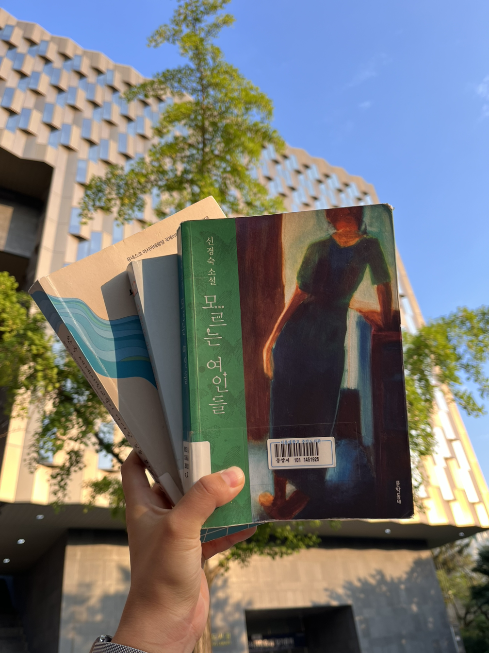 방학이 되자마자 학교 도서관의 문학 코너로 갔다. 6 자료실 문학 서가. 찜해놨던 소설을 하나 고르고 넓은 문학 서가를 한참 구경하다가 한 권을 더 골라왔다. 방학엔 문학도 잔뜩 읽으며 쉬어야지.