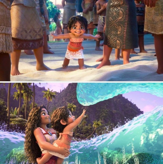 남자 주인공과의 연애 스토리가 없다니. 족장의 딸이 공주님이 아니라 예비 족장이라니. 그리고 모투누이 섬(모아나가 살고 있는 섬)을 살리기 위해 혈혈단신으로 혼자 망망대해를 떠나다니!