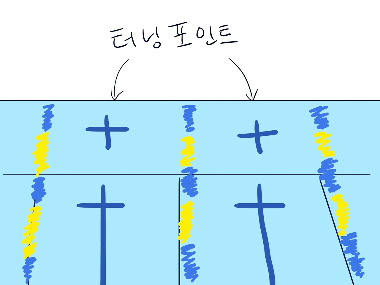터닝 타겟이란 수영장 레인 시작과 끝에 턴 하는 지점을 말한다.