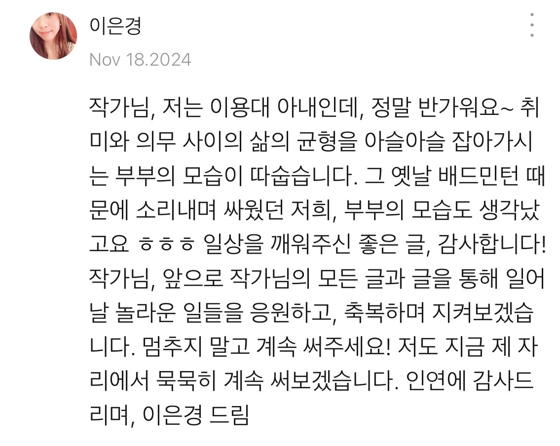 이은경 선생님께서 남겨주신 댓글을 아직도 잊을 수 없다.