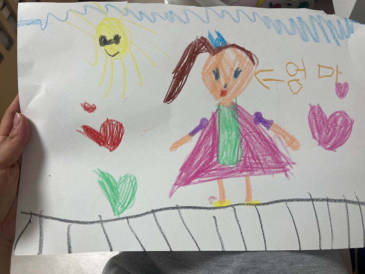 고사리 같이 작고 오동통한 귀여운 손. 너의 손을 잡아 쪽지를 건네받고는 열어 본다. 그곳에는 예쁜 하트 얼굴에 웃는 눈코입, 그리고 또박또박 편지가 쓰여 있었다.