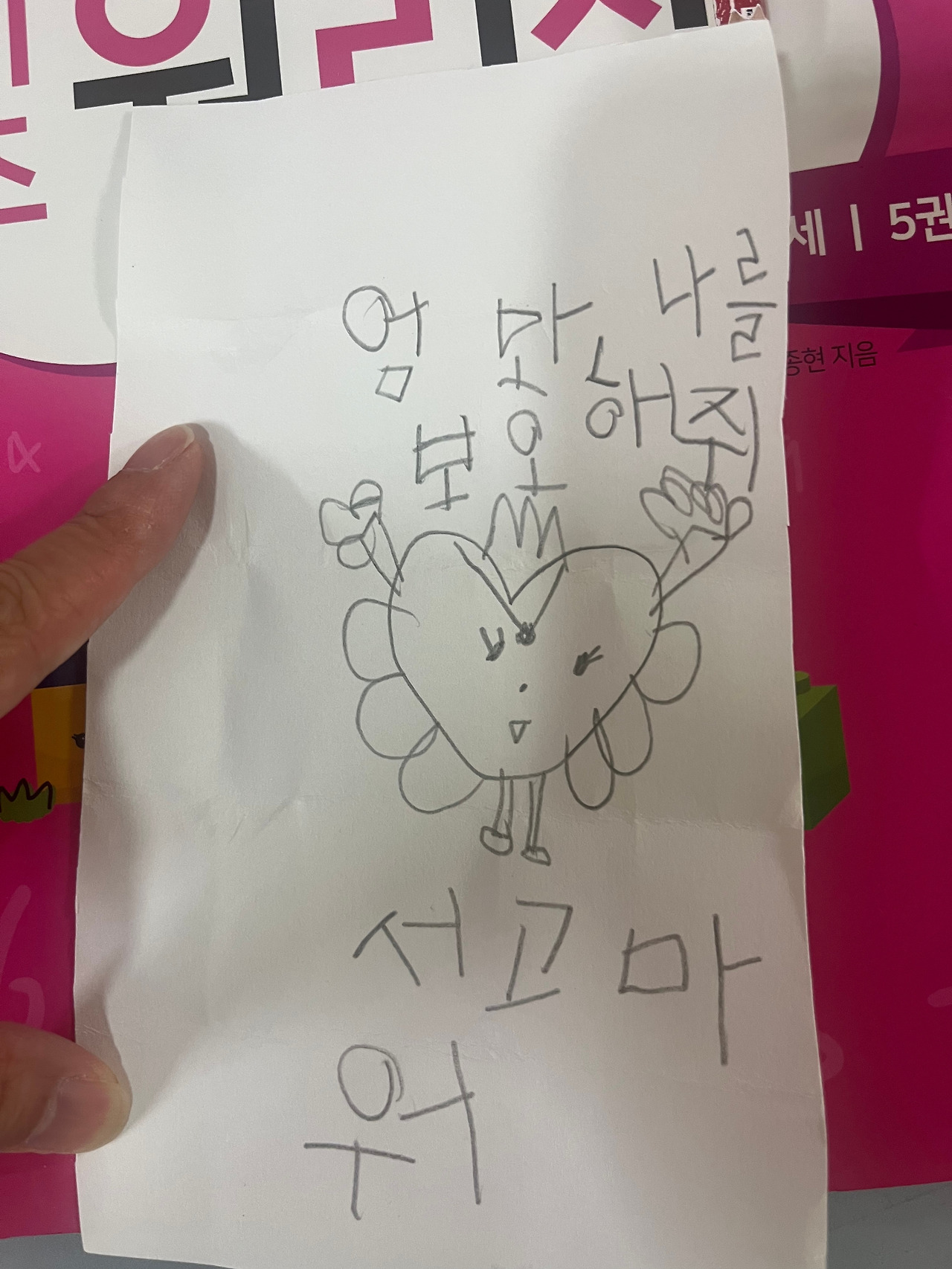 그렇게 중얼거린 후 분노의 설거지를 하고 있었는데 그런 내 뒤로 조그마한 둘째가 다가왔다. 그러더니 아주 작은 종잇조각을 건넨다.